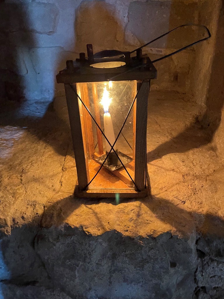 We are given lanterns before entering the West Tower of the castle in order to navigate the narrow spiral staircase.