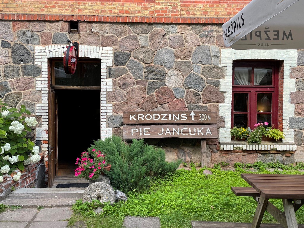After our visit to the castle, we stopped for lunch in the town of Līgatne at the same restaurant where we enjoyed lunch last weekend: Pie Jančuka. There we were served a meal of salads, potatoes, and chicken.