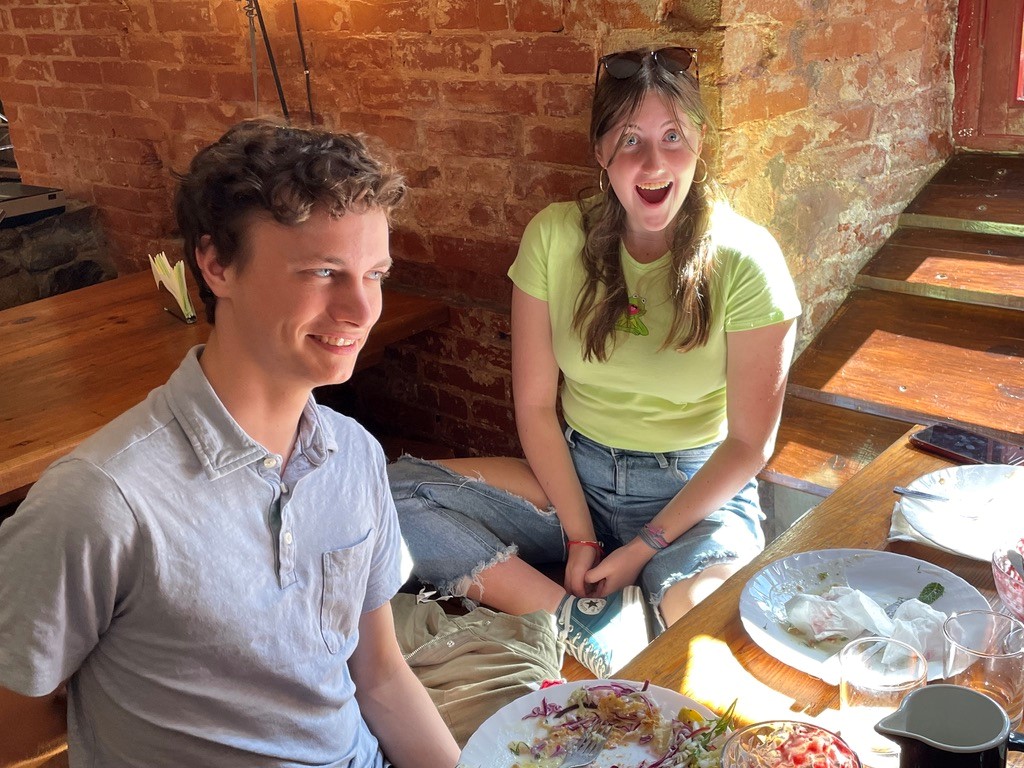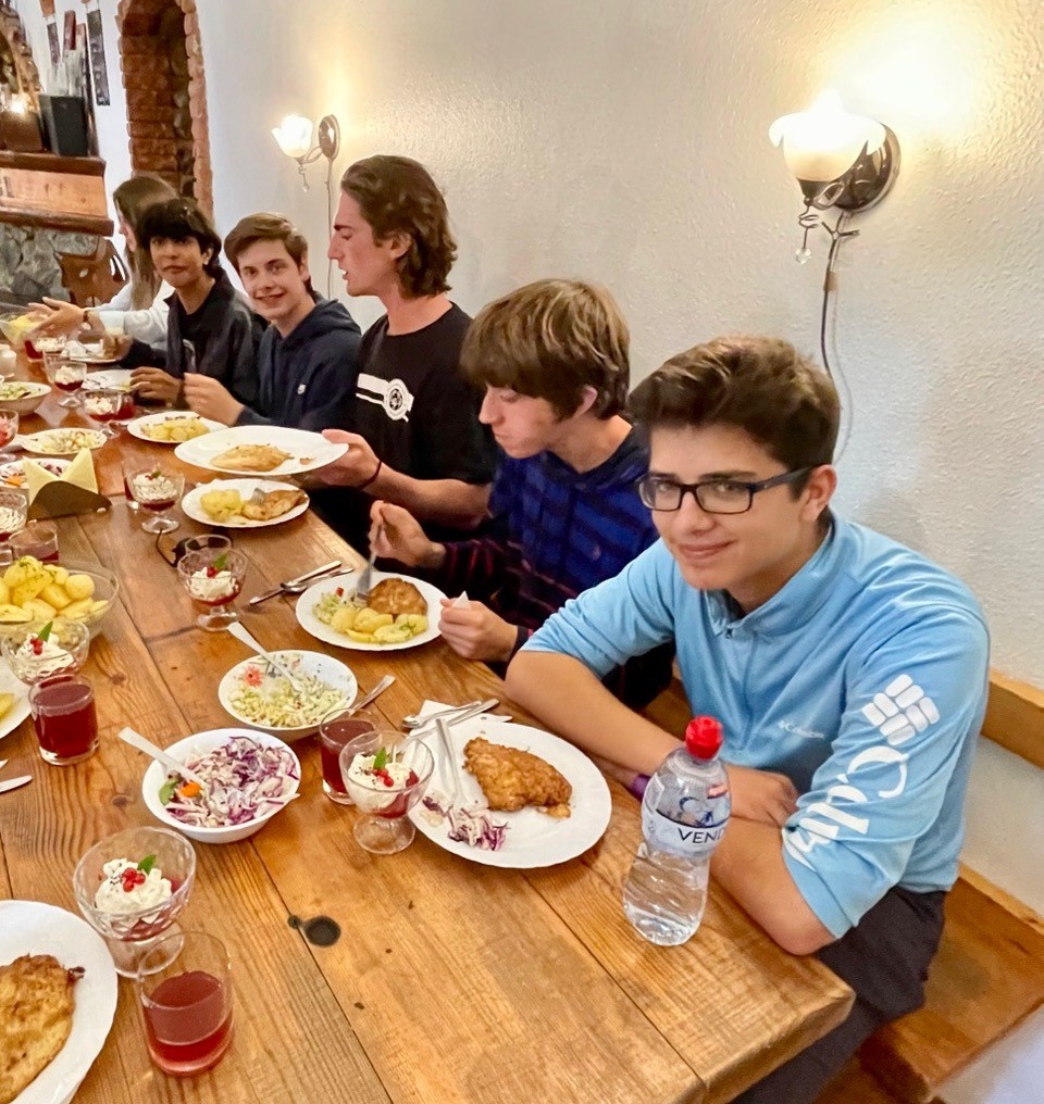 Katie, Logan, Andrew, Beckett, Gavin and Alex dig into lunch.