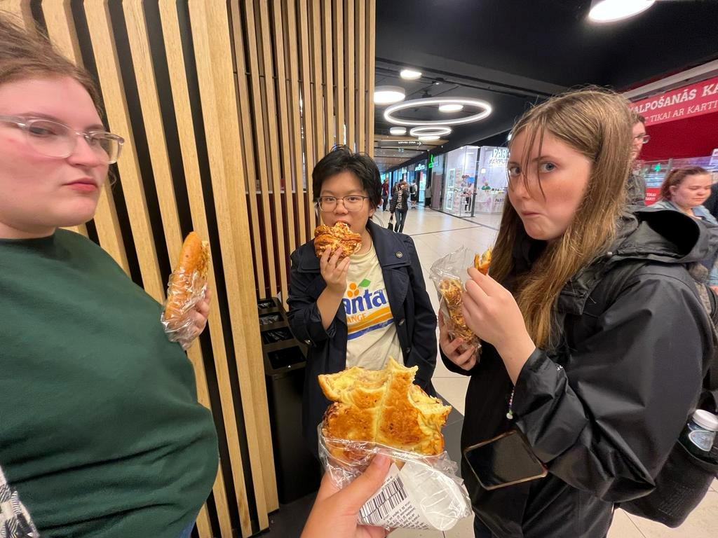 “Laurin, Helen, Jillian, and I trying some traditional Latvian snack food: bread from Rimi.” -Ally