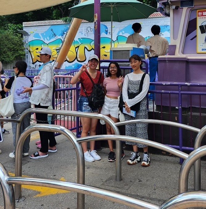 What makes the fifth week truly exceptional is the innovative incorporation of language practice and cultural exchange at Everland, one of Korea’s most popular amusement parks. While enjoying the thrills and attractions, our NSLI-Y students transformed this exciting outing into an unexpected opportunity for language learning. Partnered with their Korean peers, our students prepared interview questions that would allow them to engage with locals while waiting in line or taking a break from the excitement. Guided by a knowledgeable Korean college student, two NSLI-Y students ventured through the park, honing their language skills through real-life interactions.