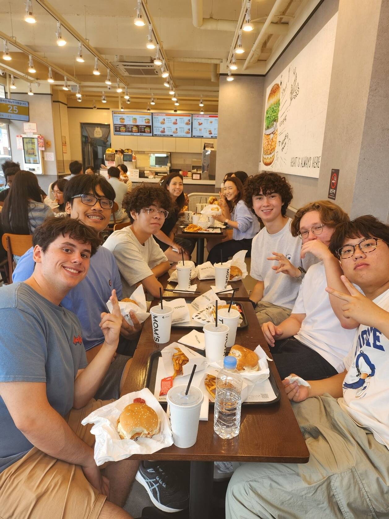 Sean, Radley, Sebastian, Korean teacher Dasom, Korean teacher Bokyung, Ezra, Julian, and Andy.