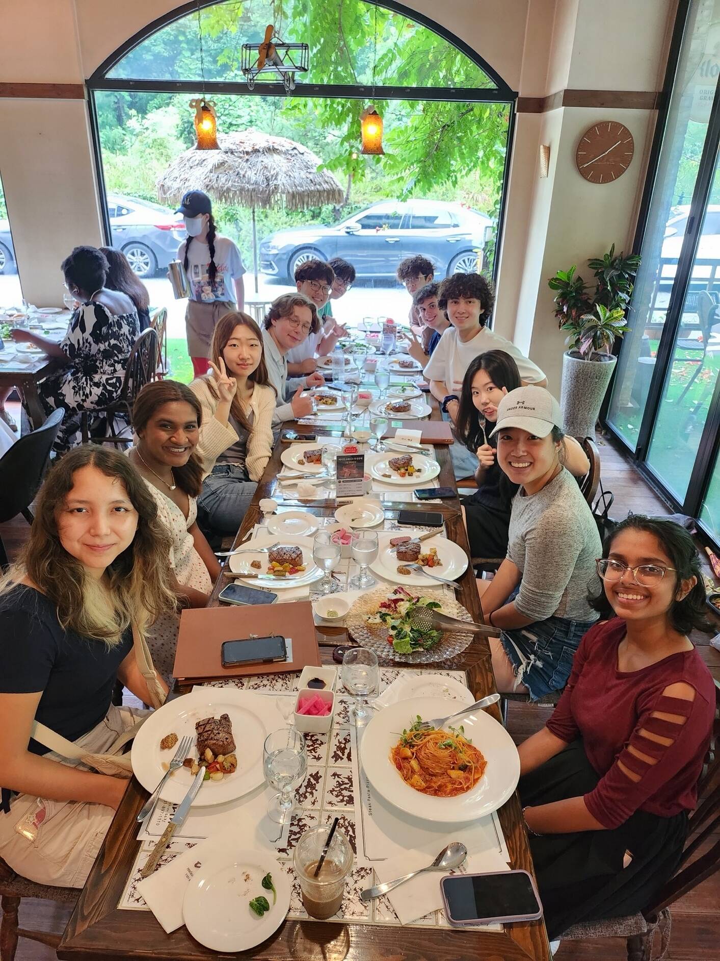 Korean peer partners, Cristina, Coordinator Jiehyun, Mentor Minju, Addie, Natelia, Charis, Francine, Victoria, and Anju.