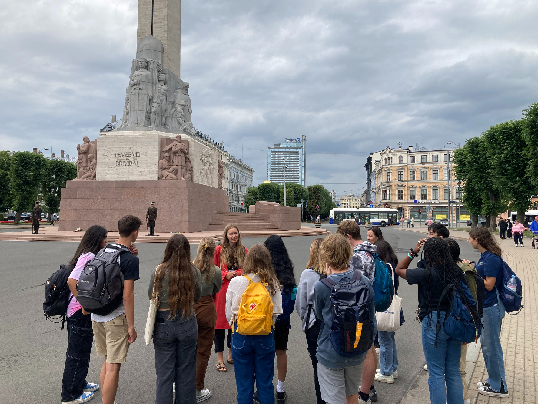 The students have been settling into their schedule at school. They have language classes throughout the morning, then eat lunch together at a nearby café. Depending on the week, after lunch, students listen to guest speakers, participate in Peer Language Partner activities, or spend time with their host families. This week, we had a tour of Old Riga. We learned about the Freedom Monument, the beautiful architecture and the “Swedish Gate”, one of the last remaining archways that were part of the original city wall.