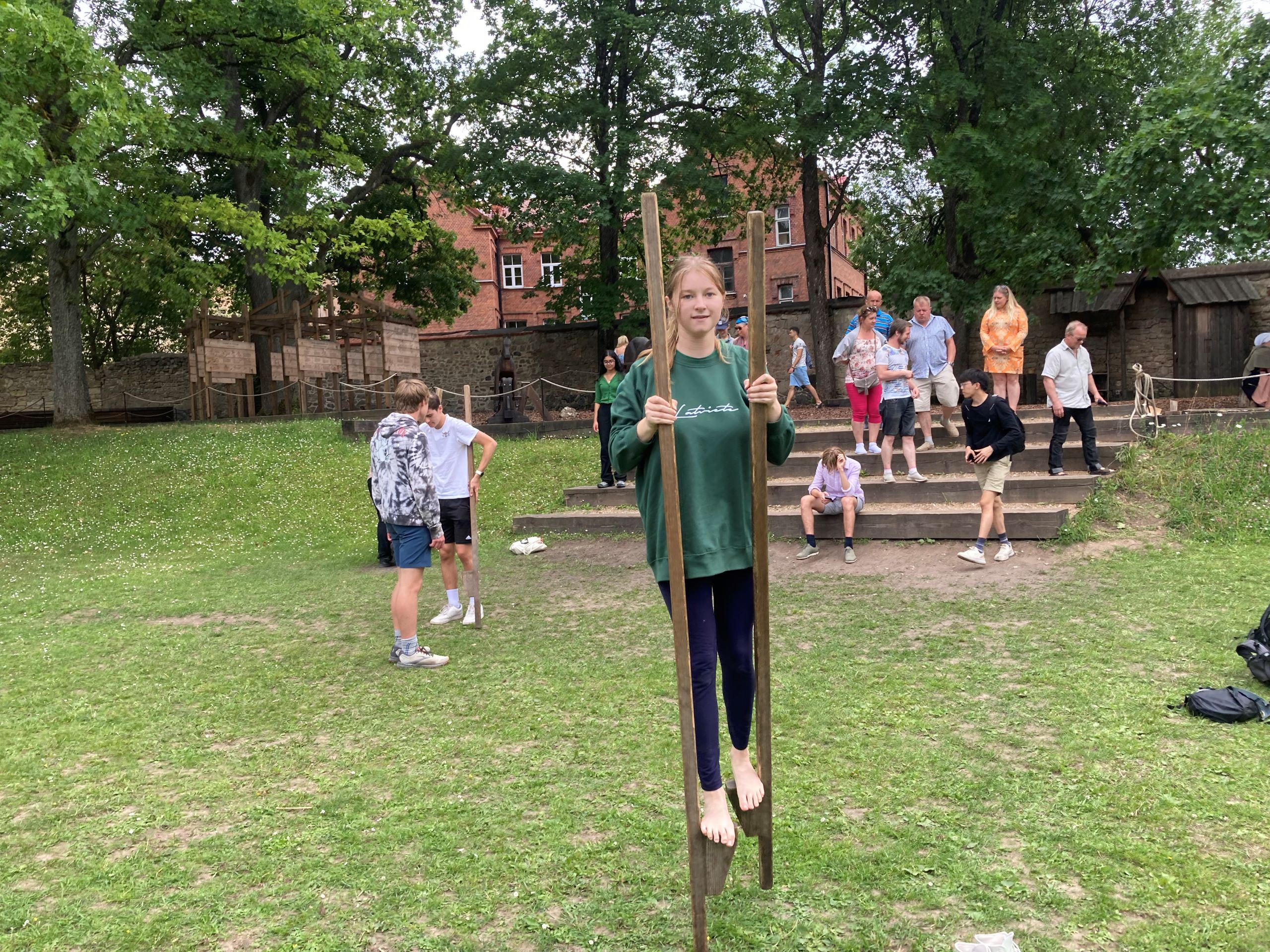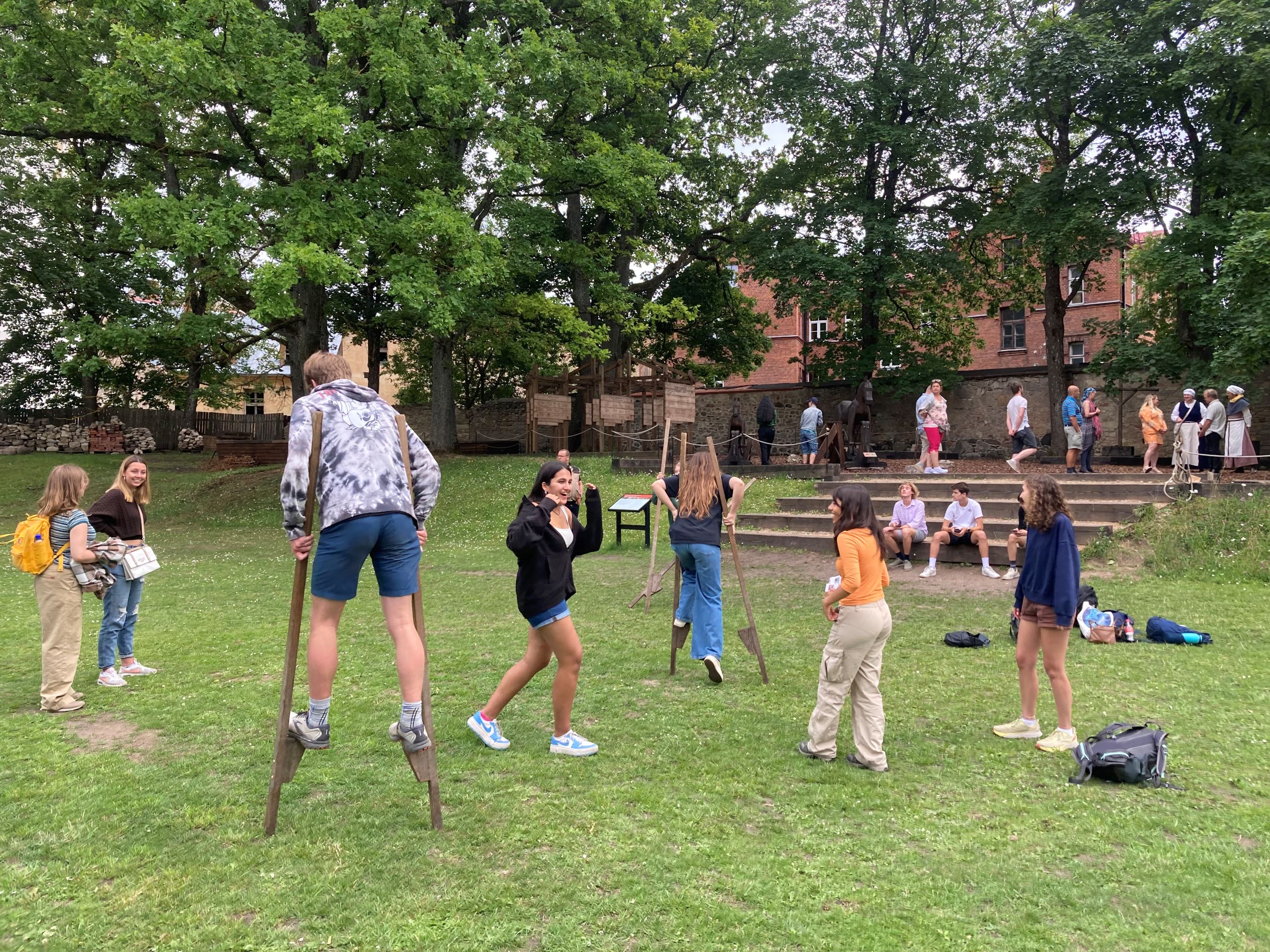 Before heading back to Riga, we enjoyed some medieval entertainments, such as walking on stilts, at which our students excelled.