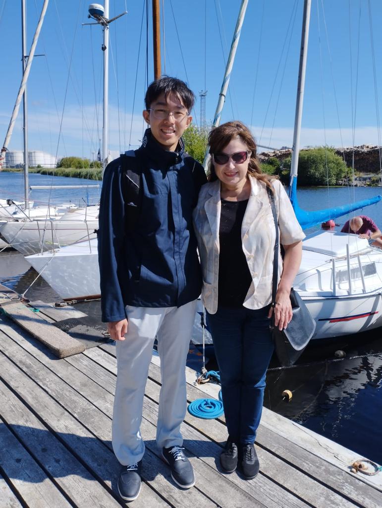 Jonathan and his host mother took some time out to enjoy the water and boats near the bay