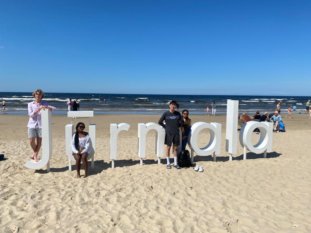 Fletcher, Eva, Jonathan, and Destiney enjoy the beaches at Jūrmala.