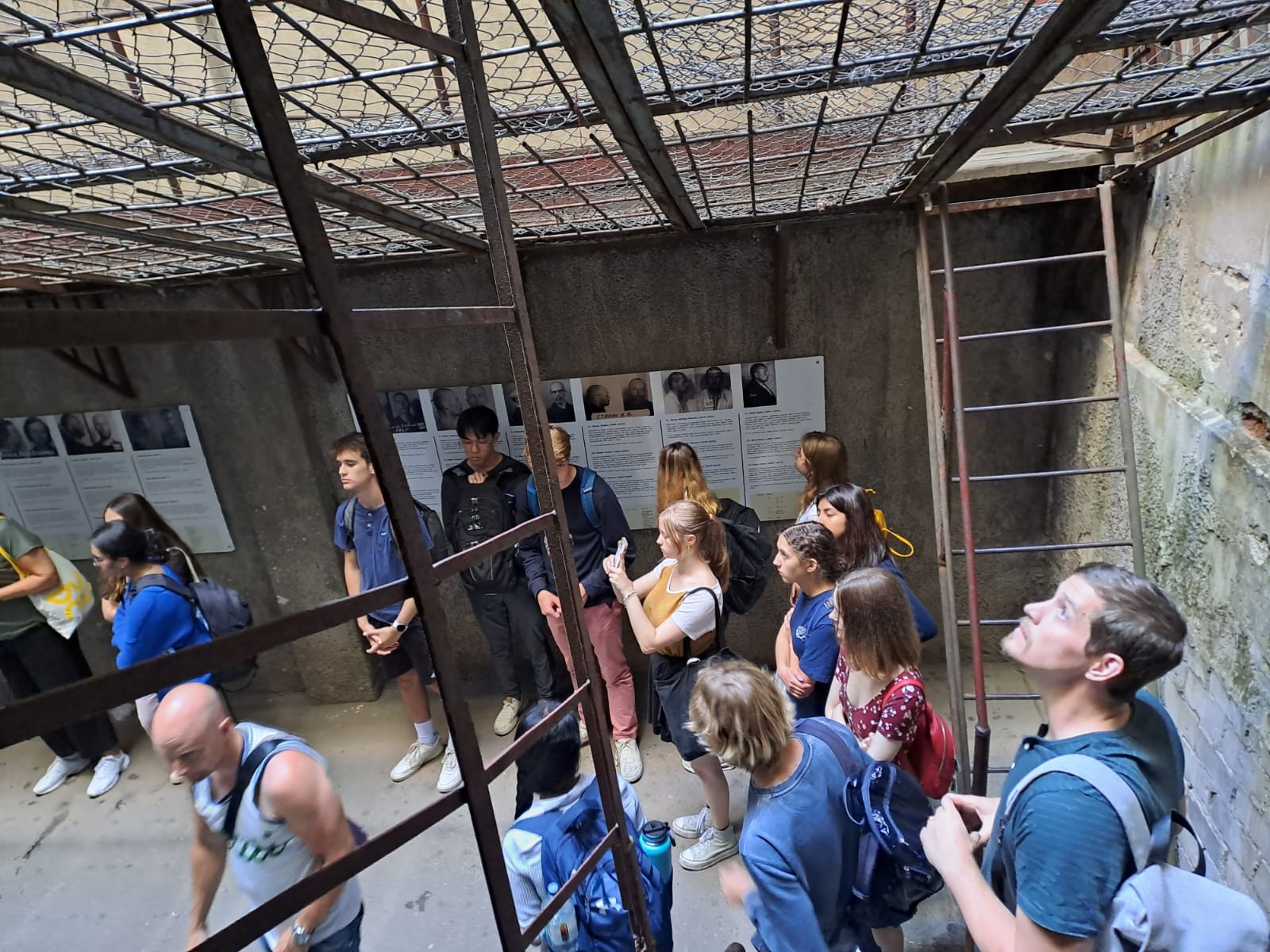 Students and Resident Director Peter tour the exercise yard of former Soviet prison.