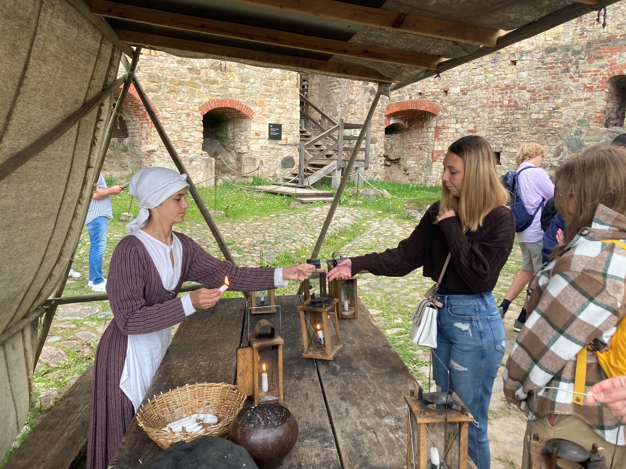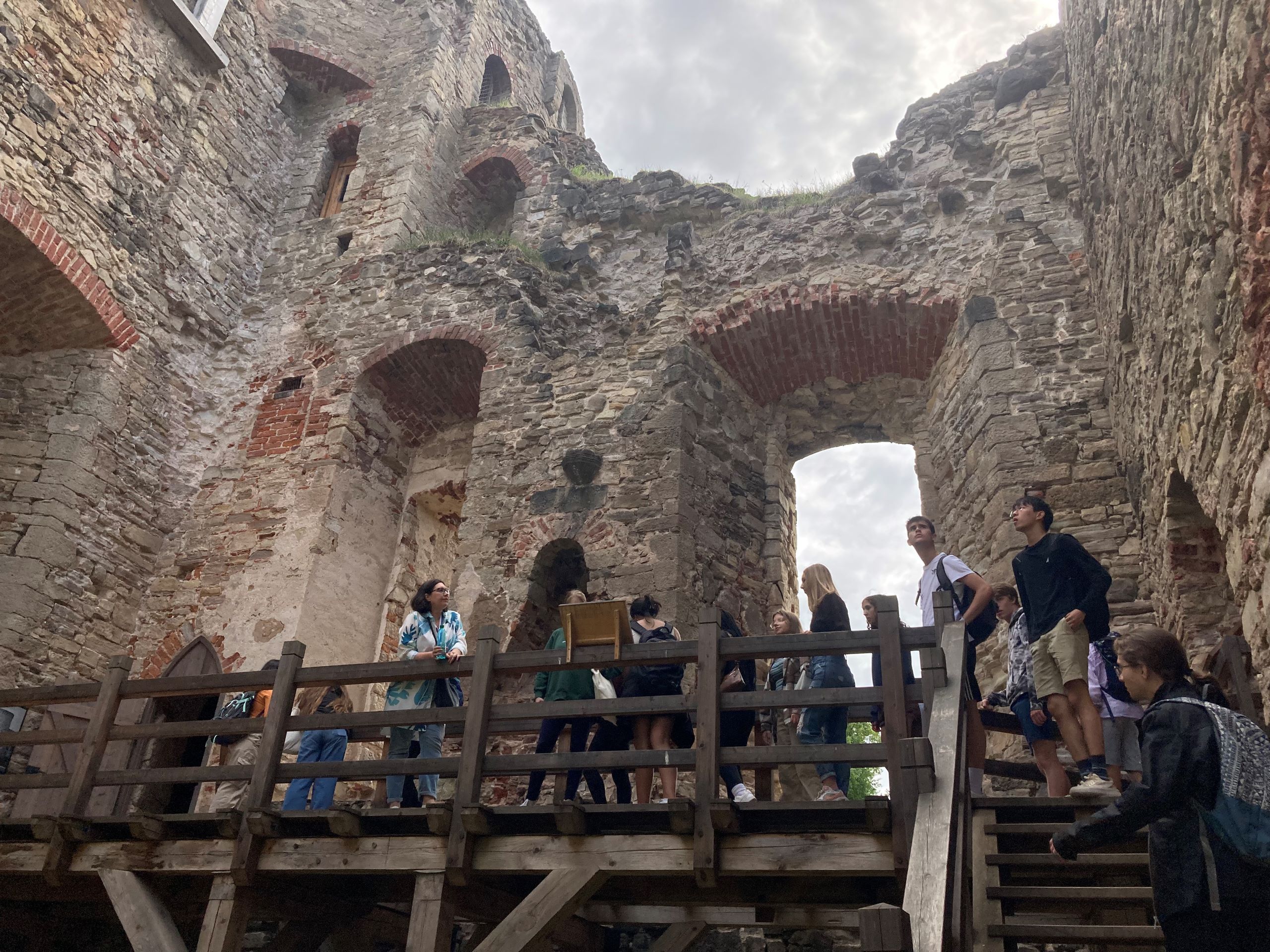 Next, it was time to explore some medieval history. On Saturday, we traveled by bus to Cēsis, a town in northeast Latvia, known for its rich culture and history. Central to this trip was our visit to Cēsis Castle. While touring the castle, we learned about its importance in the Livonian War and eventual destruction at the hands of Ivan the Terrible during its siege in 1577. We also were given lanterns to explore its darkly lit halls and steep, spiraling staircases!