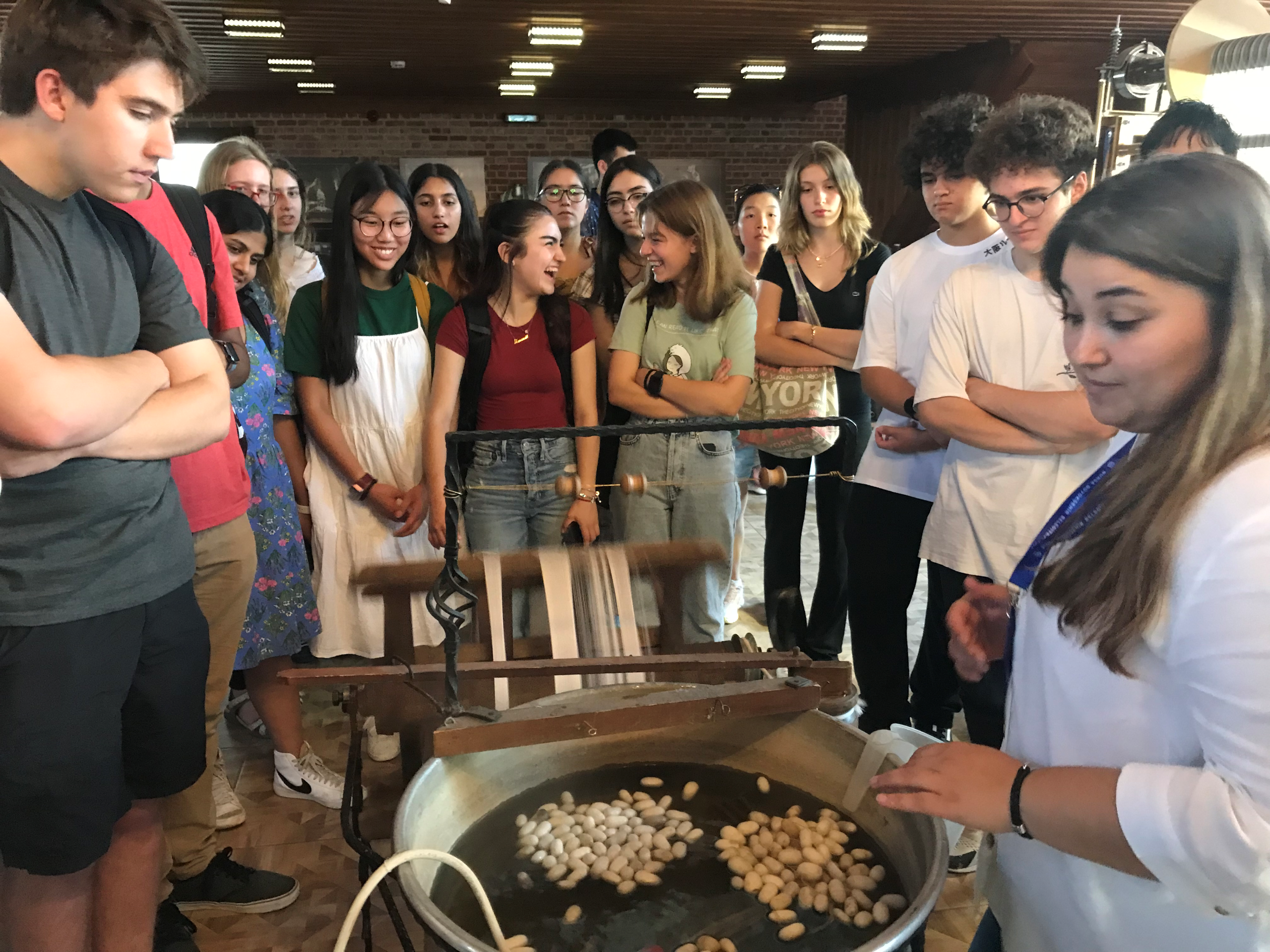 On Tuesdays and Fridays, there are organized cultural activities for students after class. This past Tuesday, we visited the Umurbey Silk Production and Design Center, a working silk manufacturing center that was developed on the site of a formerly defunct factory. As one of the central nodes on the Silk Road, Bursa has long had a leading role in the textile industry. At the Design Center, our students were able to learn about the life-cycle of silk worms and see some of the traditional techniques employed for making silk products by hand.