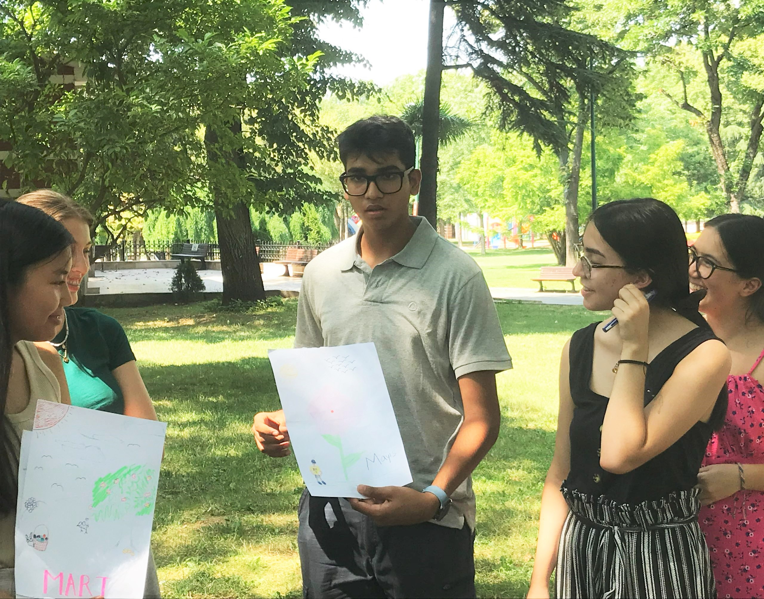 Students have adjusted to the immersion approach in the classroom and are eager to develop their language to help them navigate the city and communicate better with their host families. Our students come into the program with different backgrounds, and while our language teachers try to establish a common foundation for everyone, we also encourage students to set their own goals and develop vocabulary that is important for their own context and interests. Our Thursday peer language activities are a great opportunity to do both things. This week, we played some games to help cement new expressions related to weather and seasons, though no one needs any extra practice on how to say “it’s hot!” (Hava çok sıcak!)