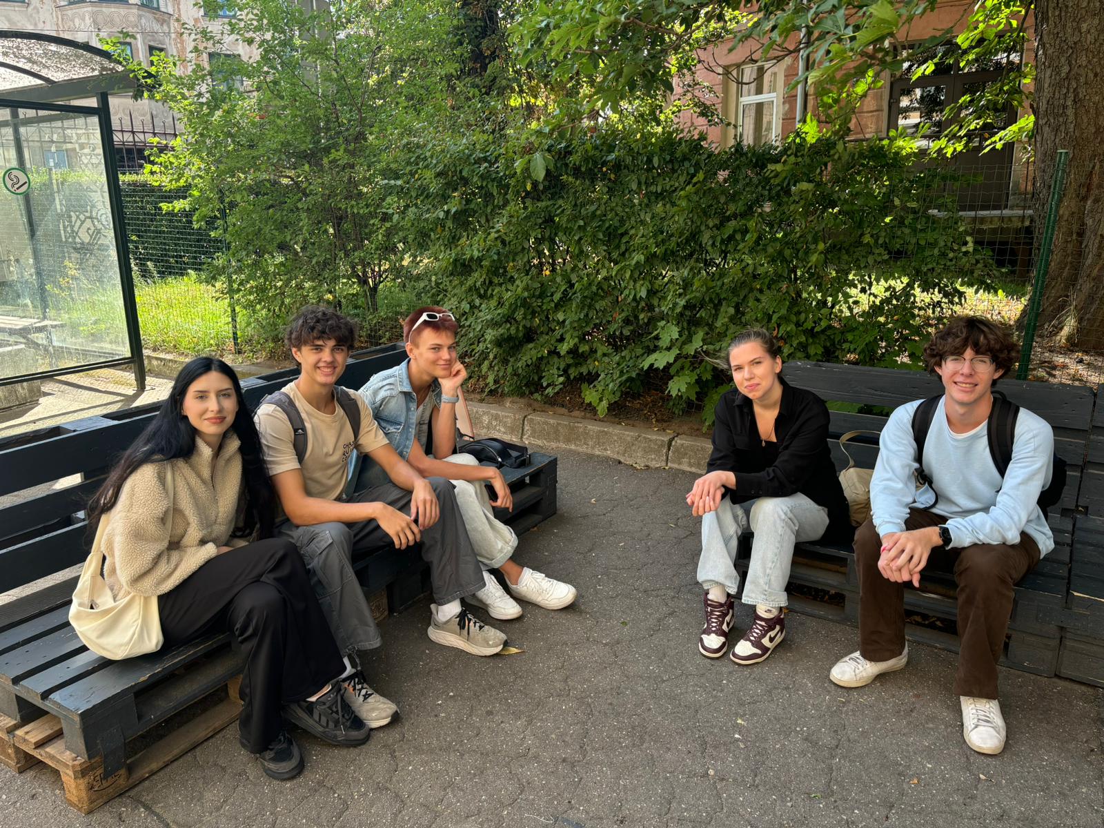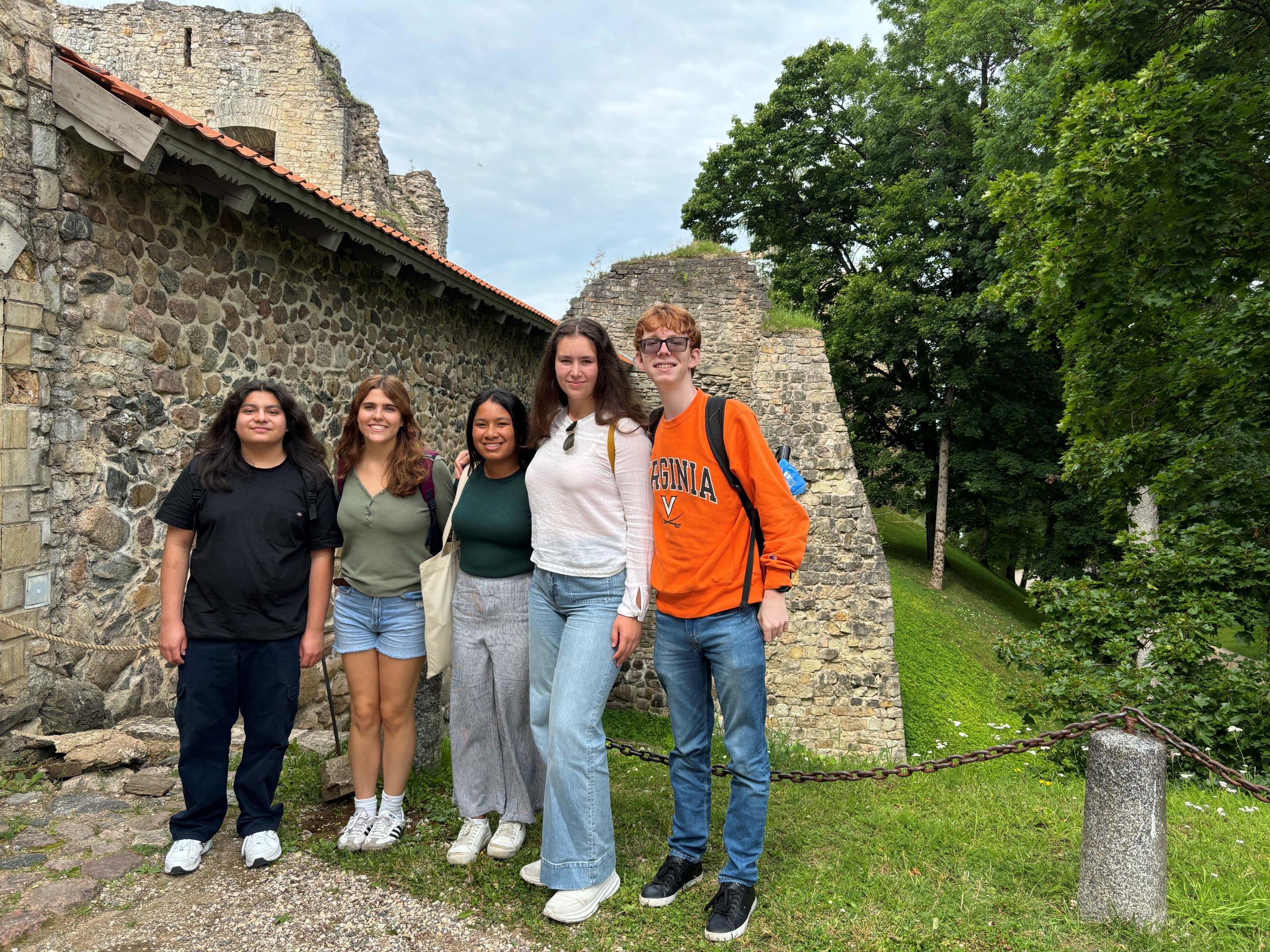 Joaquin, Sophie, Nadiya, Savyon and Robert pose in front of the Cesis castle.
