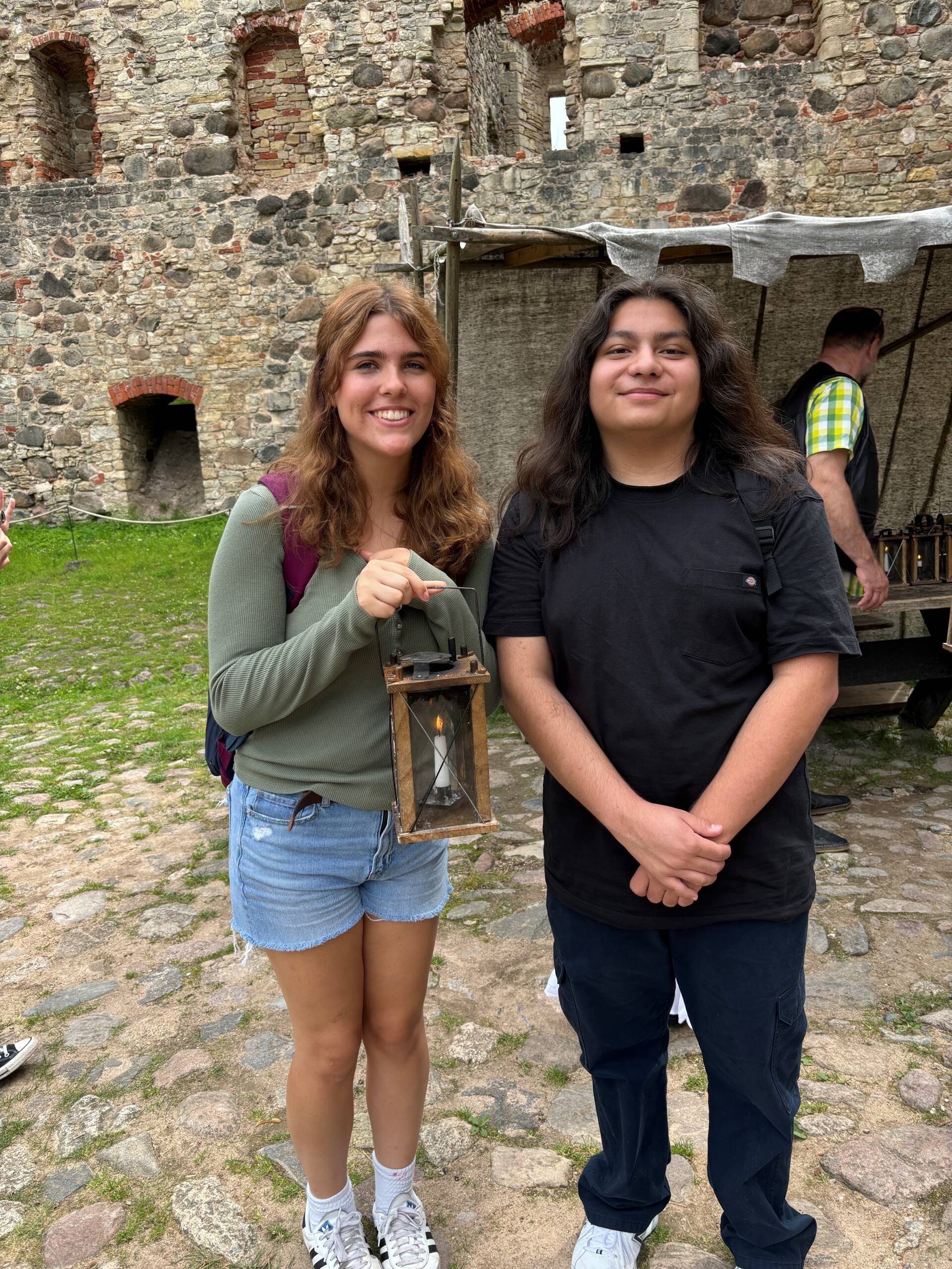 Sophie and Joaquin with a lantern – ready to enter the castle!