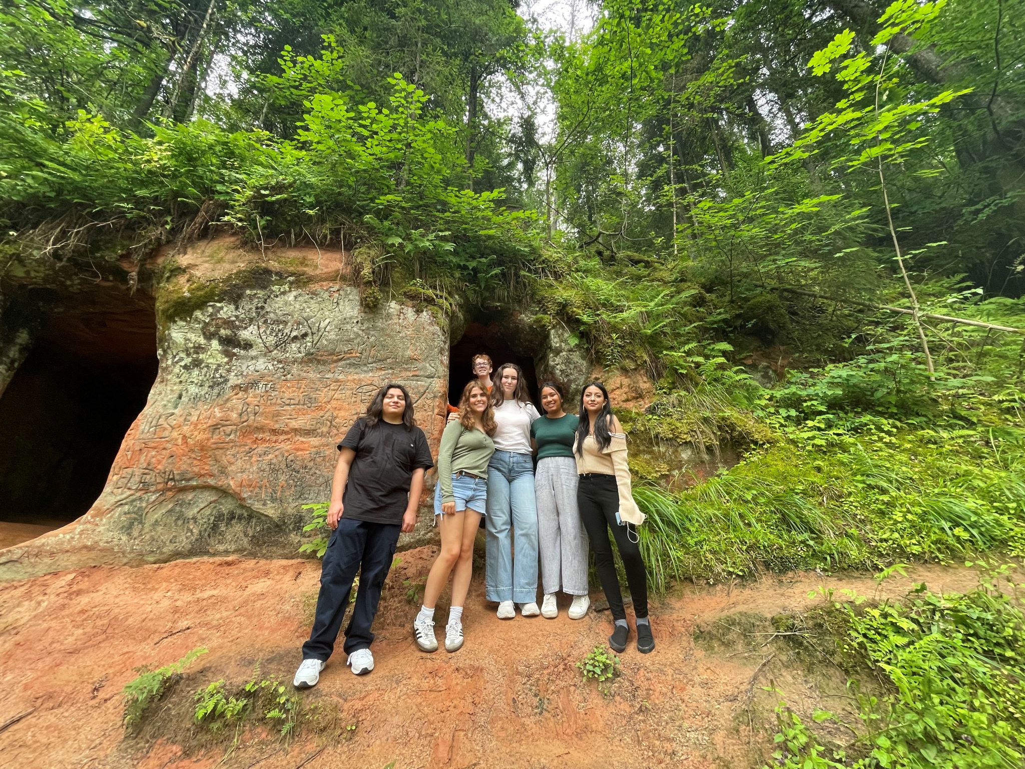 This past weekend, we had an exhilarating excursion to Cēsis Castle, and though the weather was not perfect sunshine, the memories made and the fun had were not altered by the cloudy skies. Not only did we encounter the rich history of the castle. We also explored the Ērgļu Cliffs and some local caves! Our tour guide Uldis told us so much about each place we visited.