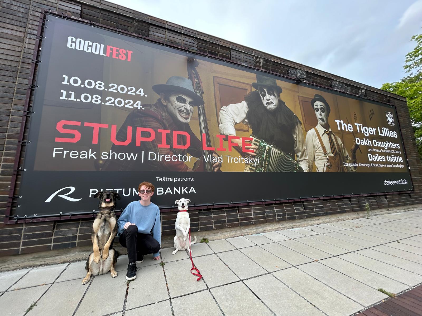 Robert walking around Riga with his host dogs.
