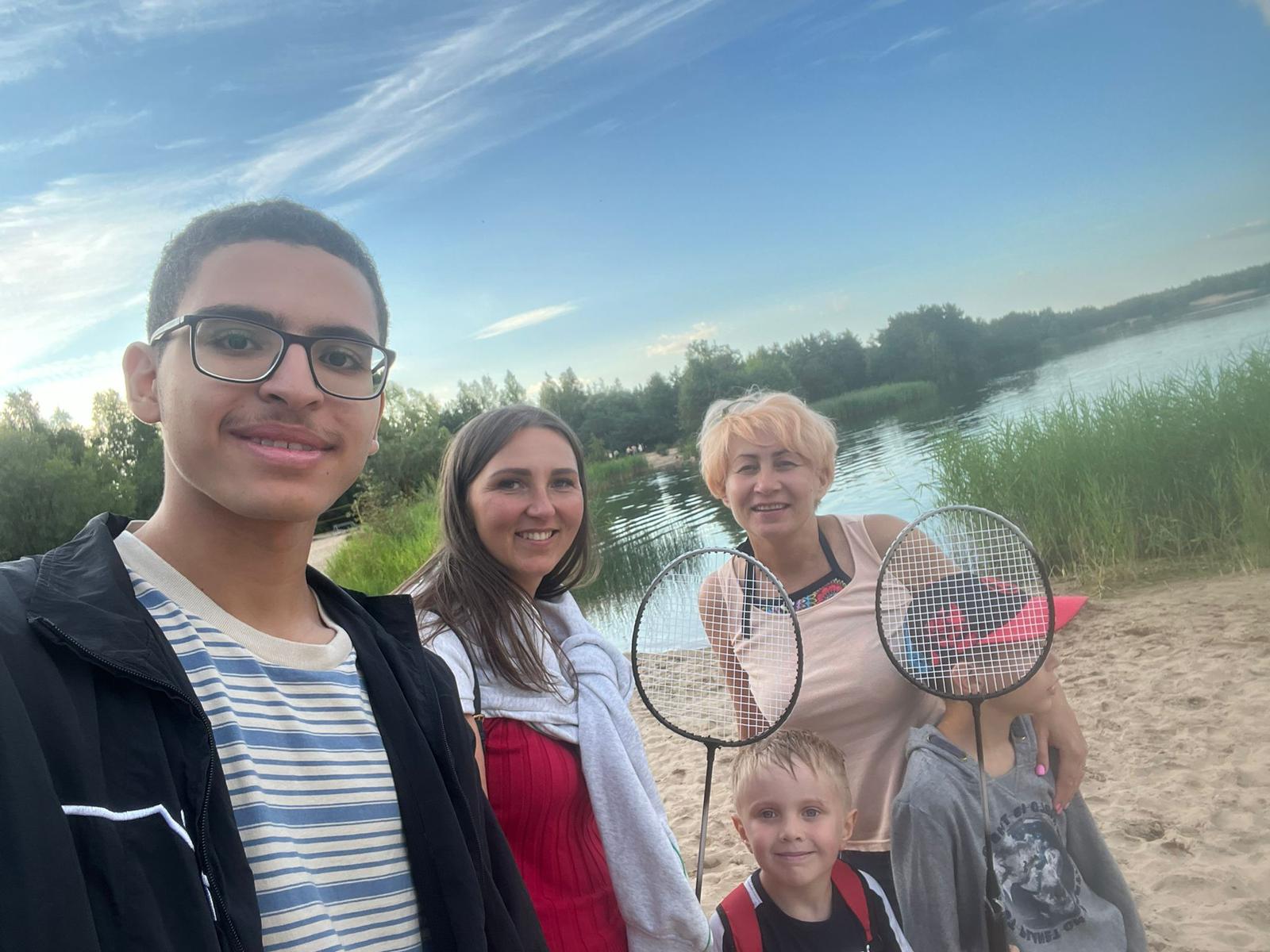 Omer relaxing with his host family and friends.