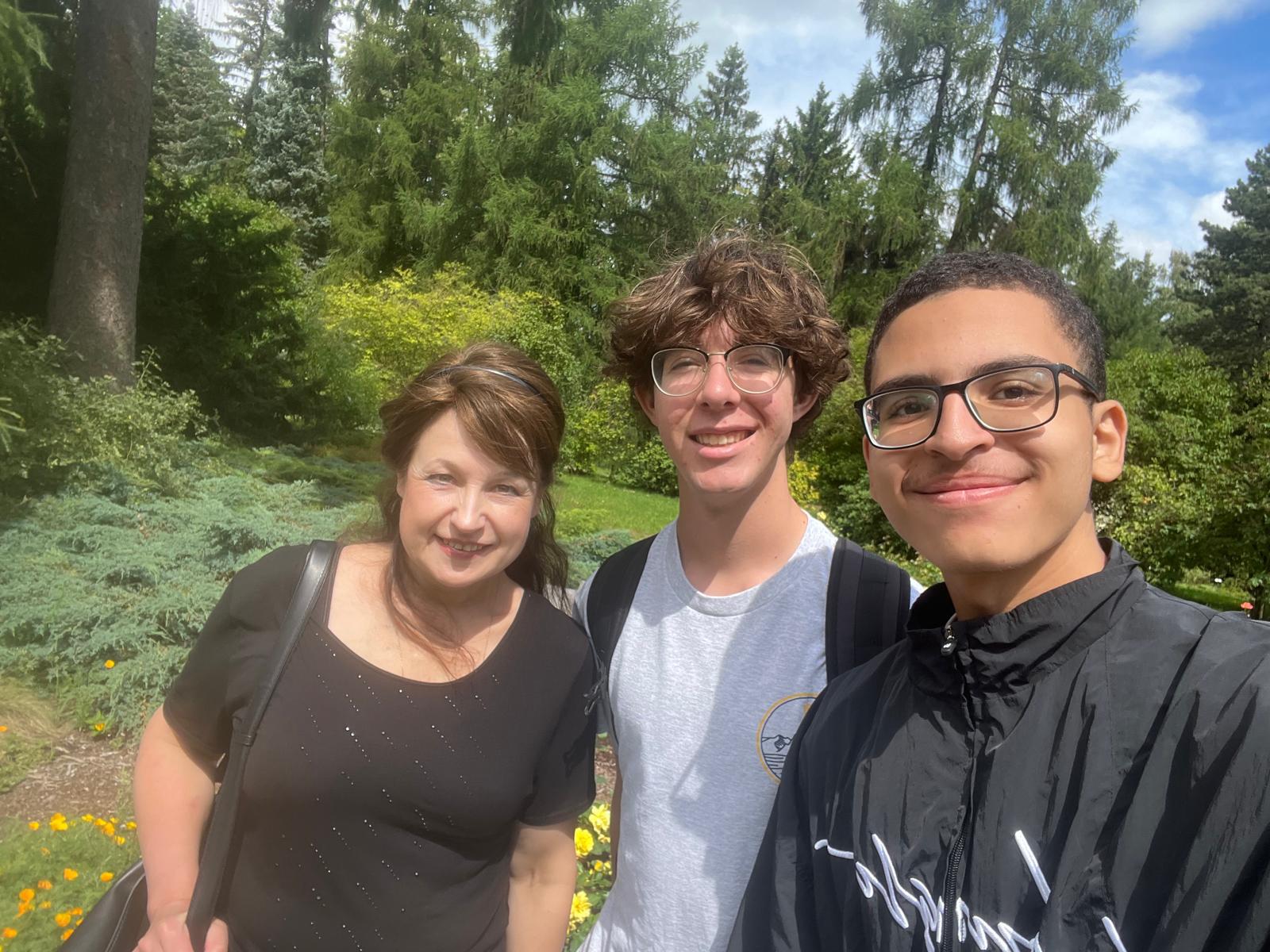 Omer, Alex, and Alex’s Host Mom Natalia at the University of Latvia’s Botanical Garden.