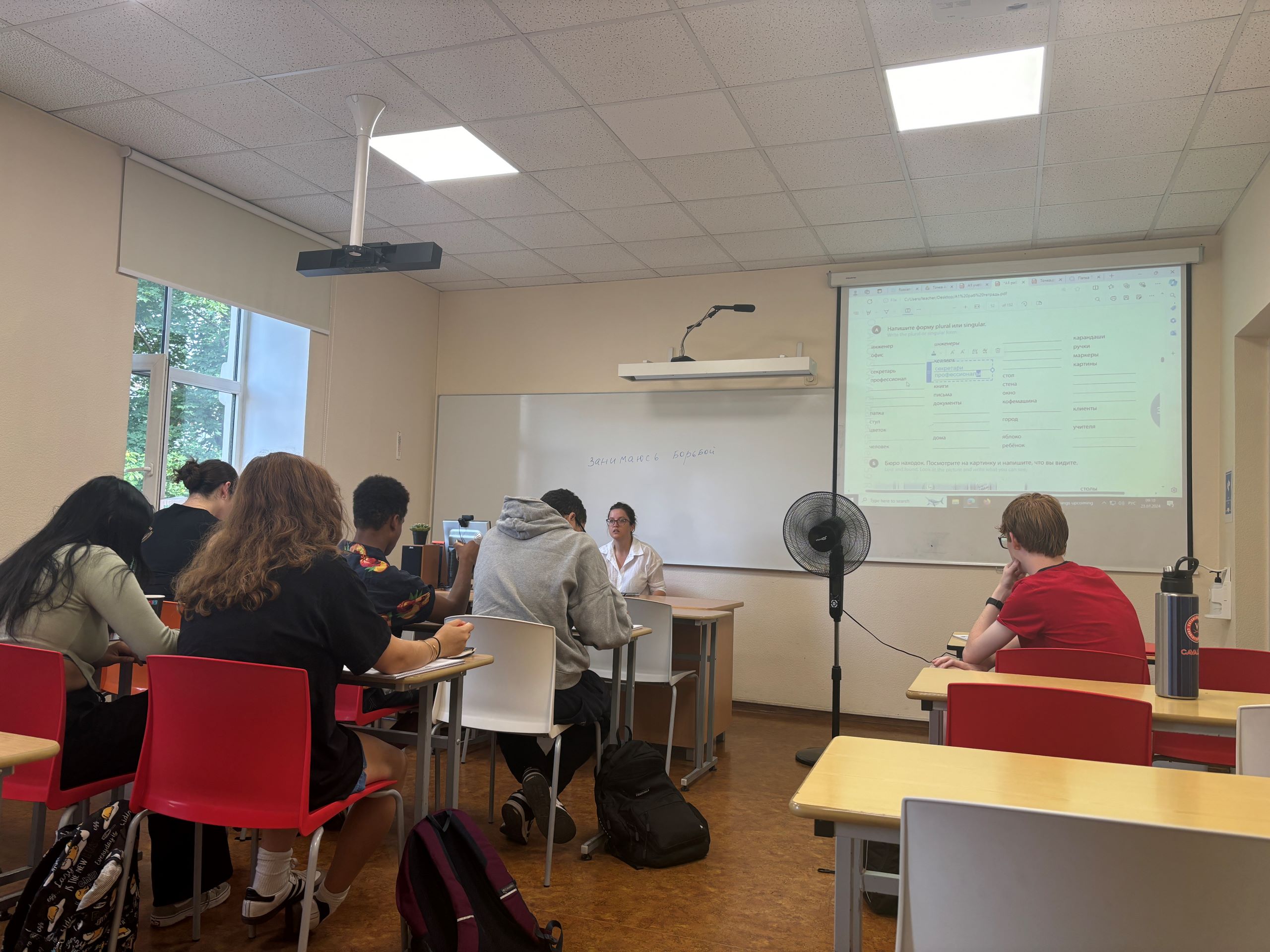 Students in Ekaterina’s class work on singular and plural nouns.