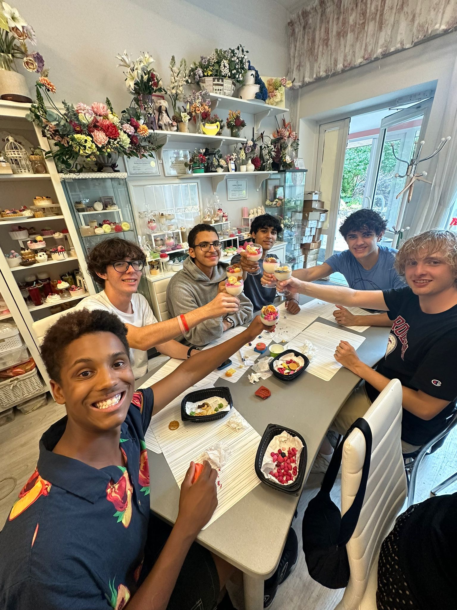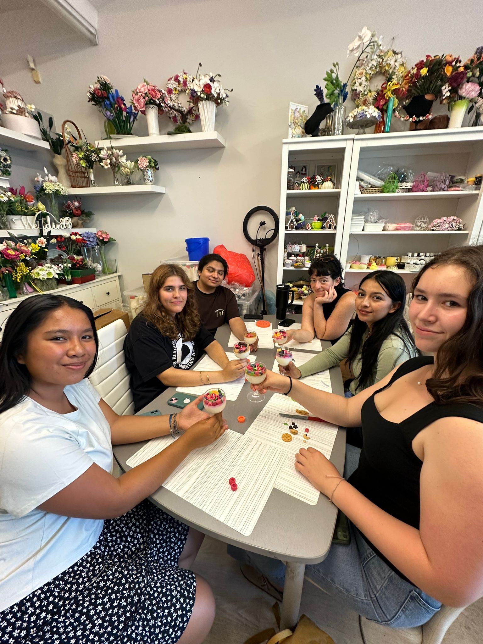 Dominic, Alex, Omer, Madhav, Will, and Dalton cheers their newly made candles.