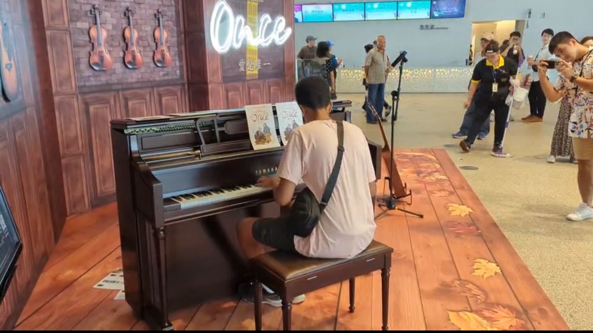 Haben impressing aunties and uncles at a public piano at the Taichung theater.