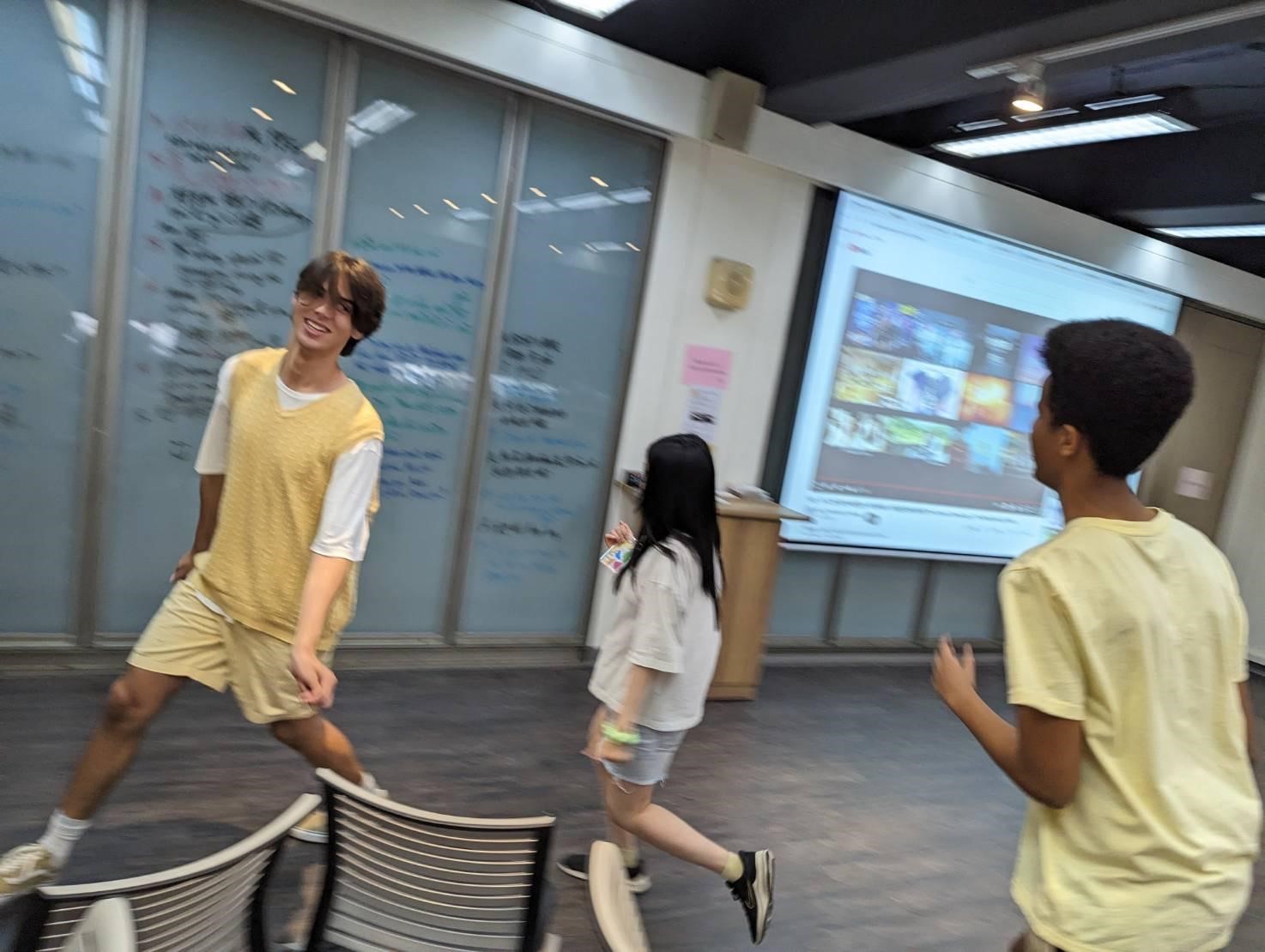 Owen, Elim, and Haben, enjoying active language activities during Speaking class.