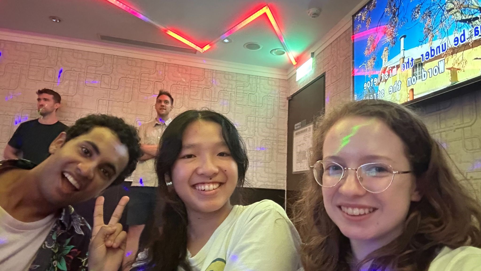 Gabriel, Jennifer, and Lucy at the KTV.