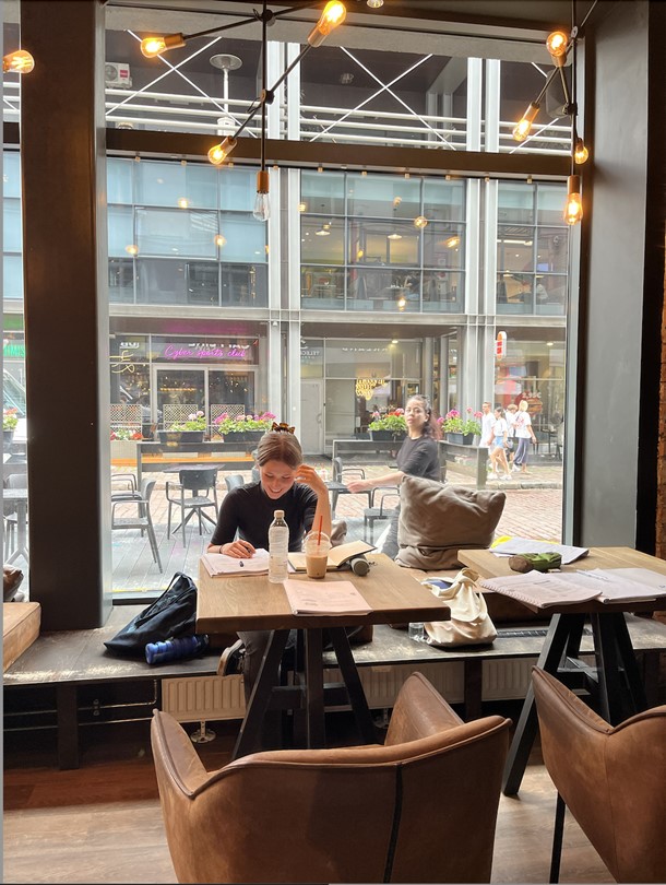 Ella locks in on her Russian at Caffeine (a popular Latvian coffee chain)