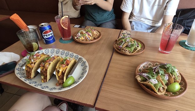 2 Californians, 1 Texan, and a Latvian host sister sample Latvian tacos!