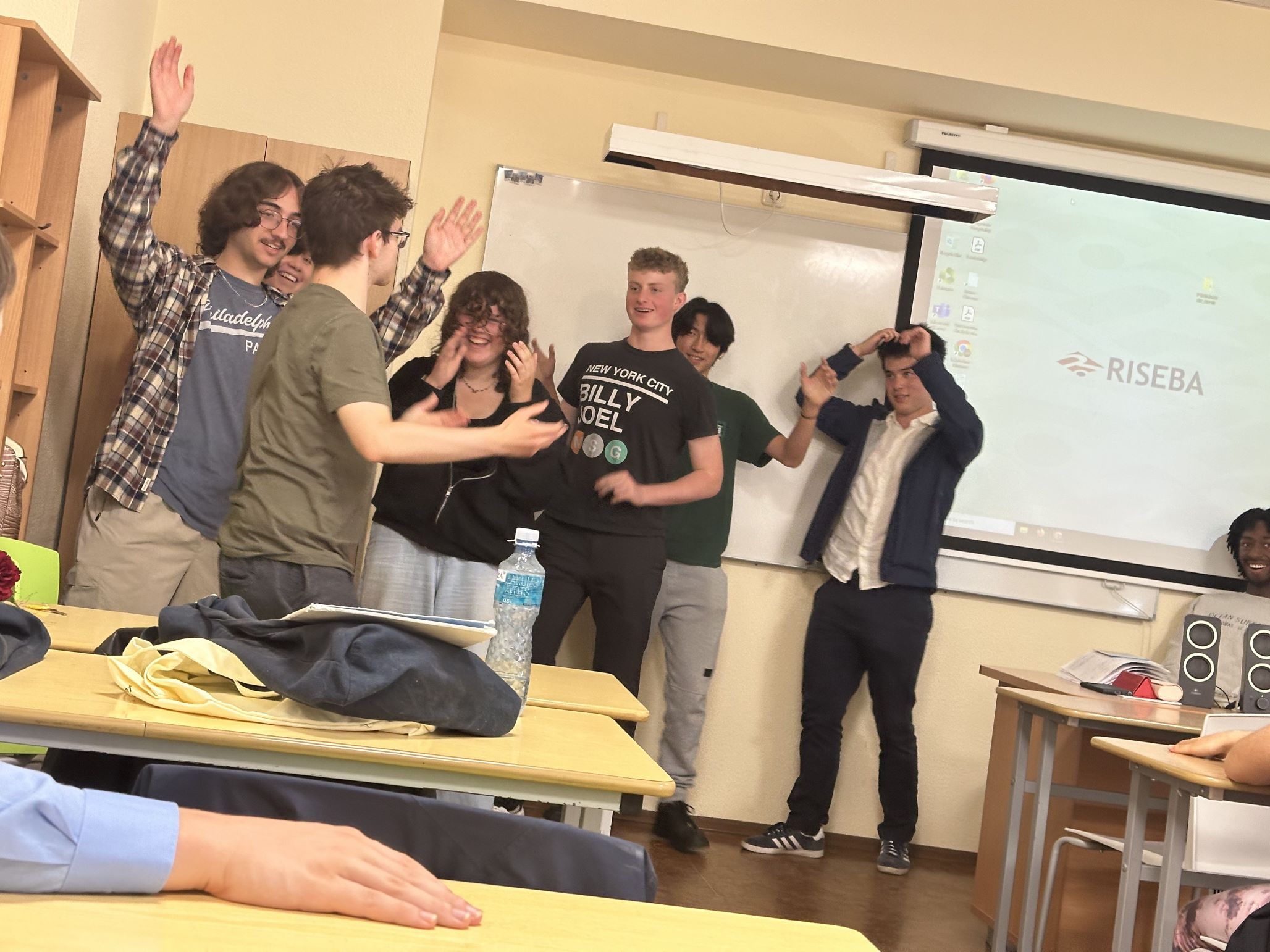 On Tuesday, the NSLI-Y students premiered the short films that they had scripted and filmed with their peer partners over the last two weeks. Despite these films being only around five minutes or so, they were quite exciting to watch. NSLI-Y students were required to speak Russian in the films, and some of them were quite funny. The films were very entertaining and featured some original-story murder mystery films as well as a psychological film. There was also a surprisingly well-acted rendition of the first Twilight movie. Another group acted out a typical day riding the trams in Riga, along with all the trials and tribulations that came with riding public transportation. After the students were able to show off their Russian skills and their acting skills, they played games with their peer partners for the remainder of the session. They were able to further develop their Russian skills through learning or explaining how to play the games in Russian, and of course even playing the games required speaking in Russian!