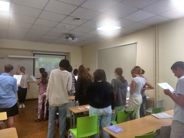 Astrid presents a poem she memorized in Ludmila’s class for all of her peers, Resident Directors, and the overseas partners!