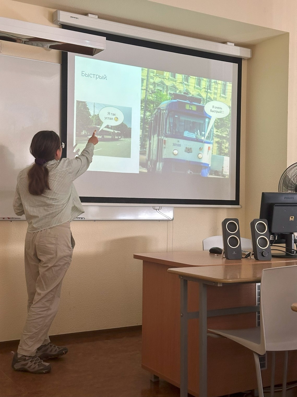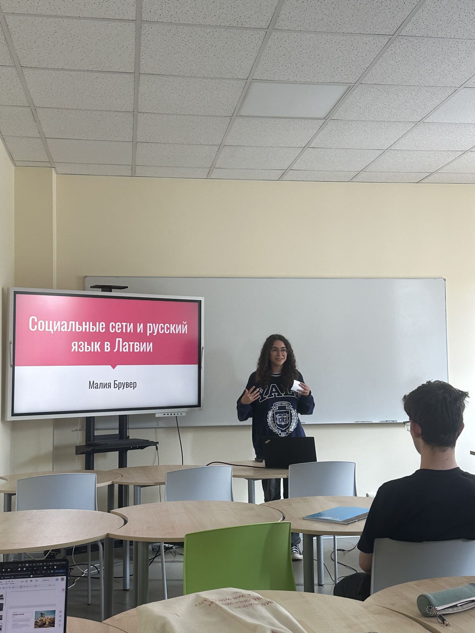 Malia gives a presentation on the usage of the Russian language on social media platforms.