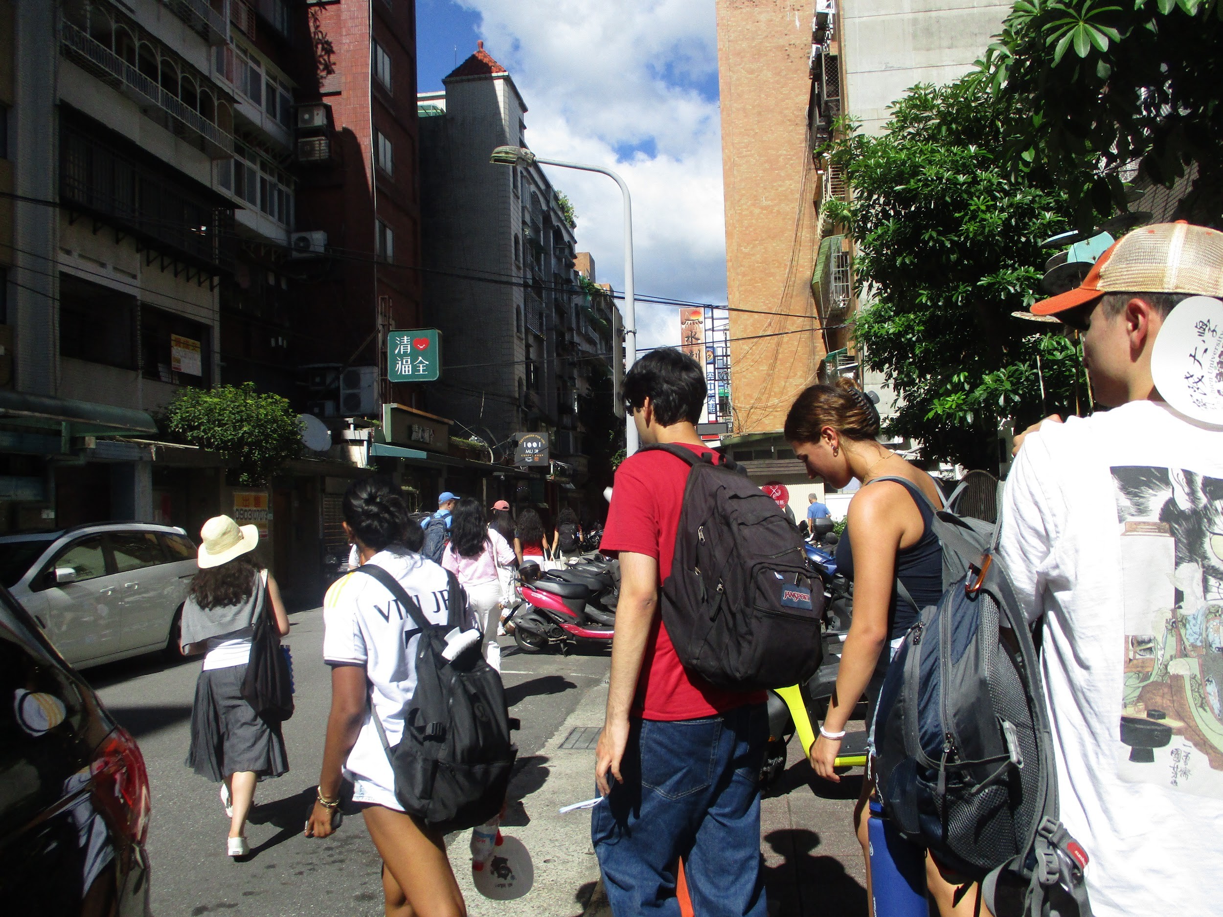 Our classes started on Monday, and everyone successfully navigated Taiwanese transit to make it to Shih Chien on our first day! After arriving, we immediately dove into intensive classes with our three language teachers who are part of Shih Chien’s Mandarin program. We split into levels based on proficiency. Each class has three hours of class in the morning taught mostly in Mandarin centered around grammar, vocabulary, and identifying Chinese characters. We also take a one hour conversation class with a different language teacher aimed at helping us apply what we learn. All classes use the same textbook, which teaches in both pinyin and Traditional Chinese (the character system used in Taiwan). We all have made great strides so far and are excited to continue learning!