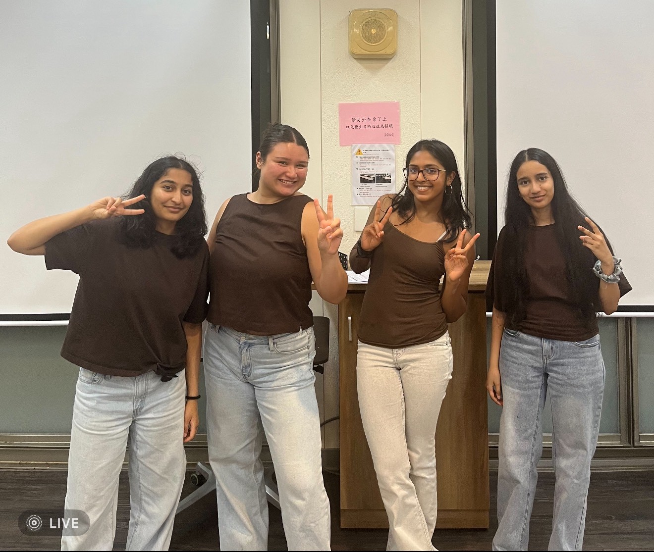 Nitya, Li Laoshi, Maya, and Narayani in matching outfits.