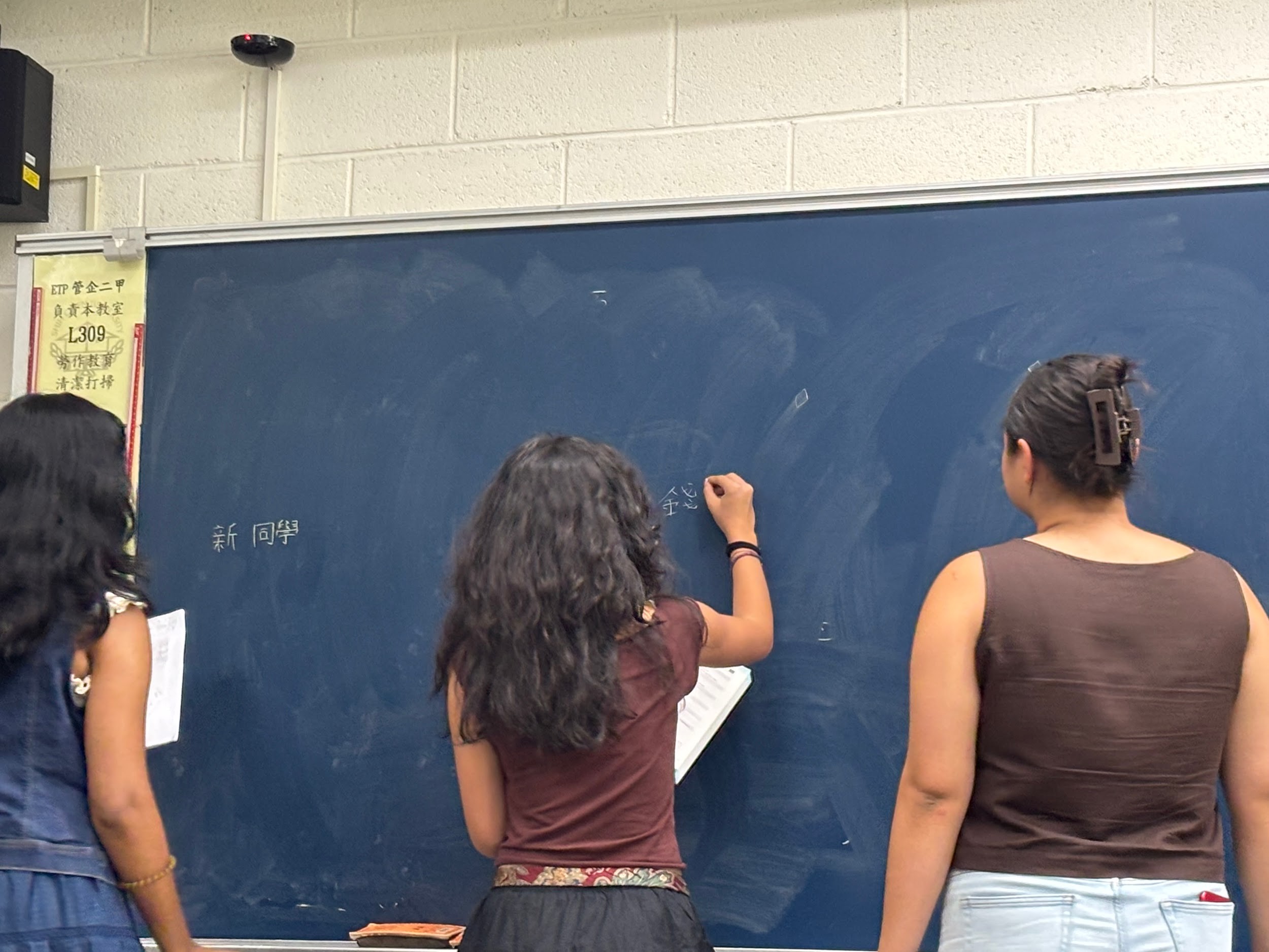 Nishta, Stella, practicing writing Chinese characters with Li Laoshi.