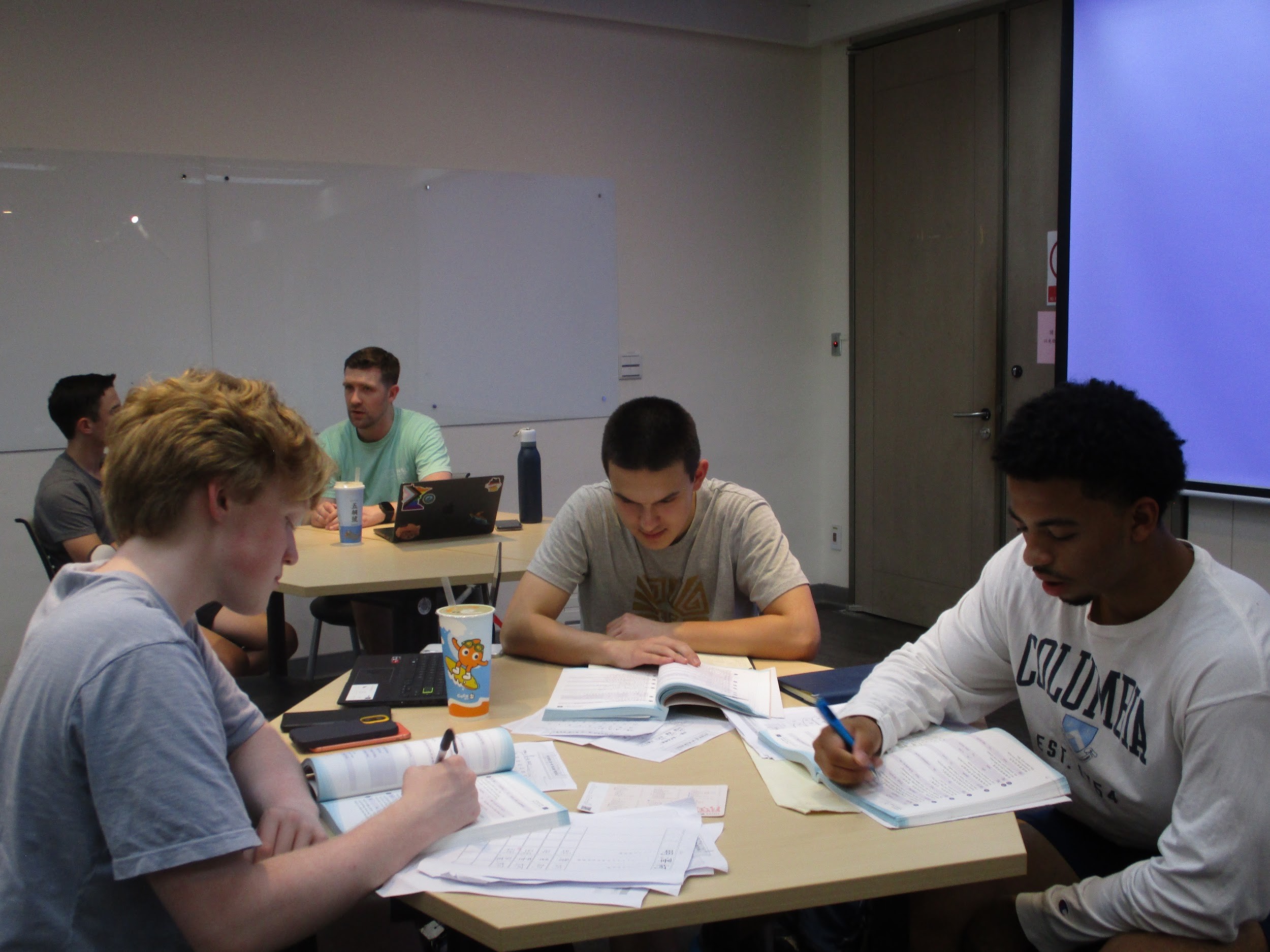 Ben, Marshall, and Sam working on homework.