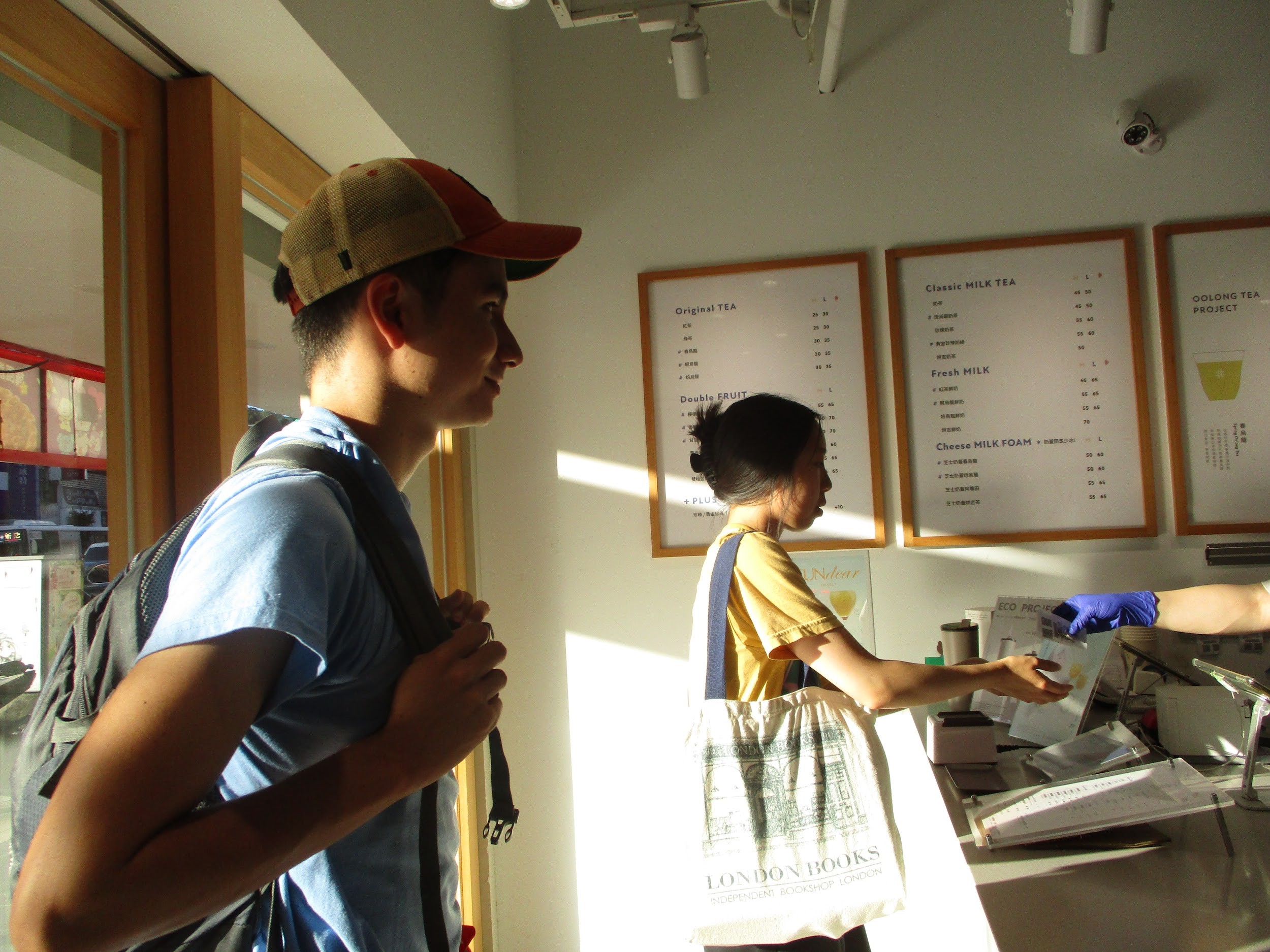 Tommy and Kelly buying tea.