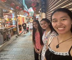 Narayani, Marcella, and Sonam exploring the streets of Jiufen.