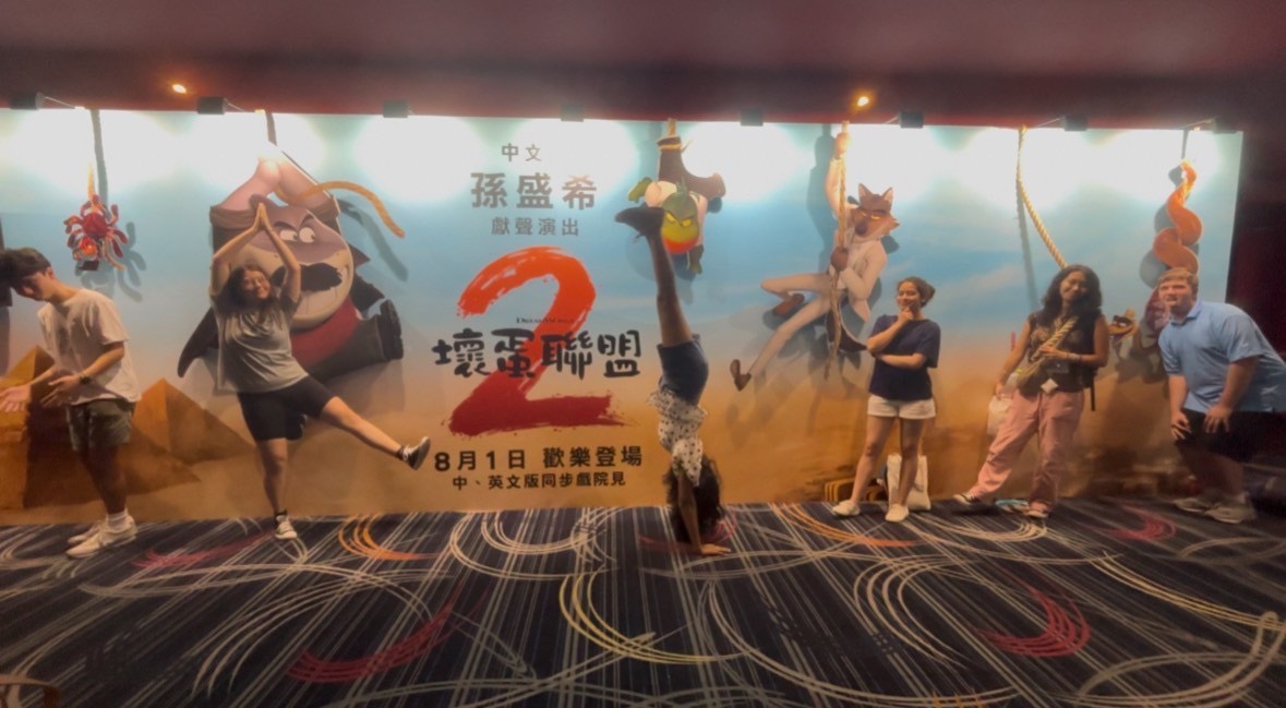On Wednesday, students had their weekly meeting with their Resident Directors, where they reflected on how they have been dealing with homesickness, lack of motivation, and the challenges that come with studying abroad. A few suggestions that arose during the conversation included physical activity, frequent communication with loved ones, maintaining a routine similar to one they have at home, and finding joy in little things, whether it is trying a new boba shop or taking the time to continue a hobby while abroad. After their reflections, they all split into groups and presented to their peers their presentations on current American politics in regards to Confucianism and Daoism. After the presentations and the meeting concluded, a few students went to a baseball game with their host families, but most students went to a local theater with RDs and Shih Chien University staff to watch the new Superman movie on the big screen. After a short 20-minute walk, students bought both traditional and Taiwanese snacks and took photos before filing into the theater to watch the movie. After the movie, we asked students what they thought about it, and most really enjoyed the movie! They particularly loved the message and the plot, and enjoyed the humor and heart throughout the film. After the movie, some students headed home while others stopped at the food court and worked together on homework and studying while getting a bite to eat. Quite a long day!