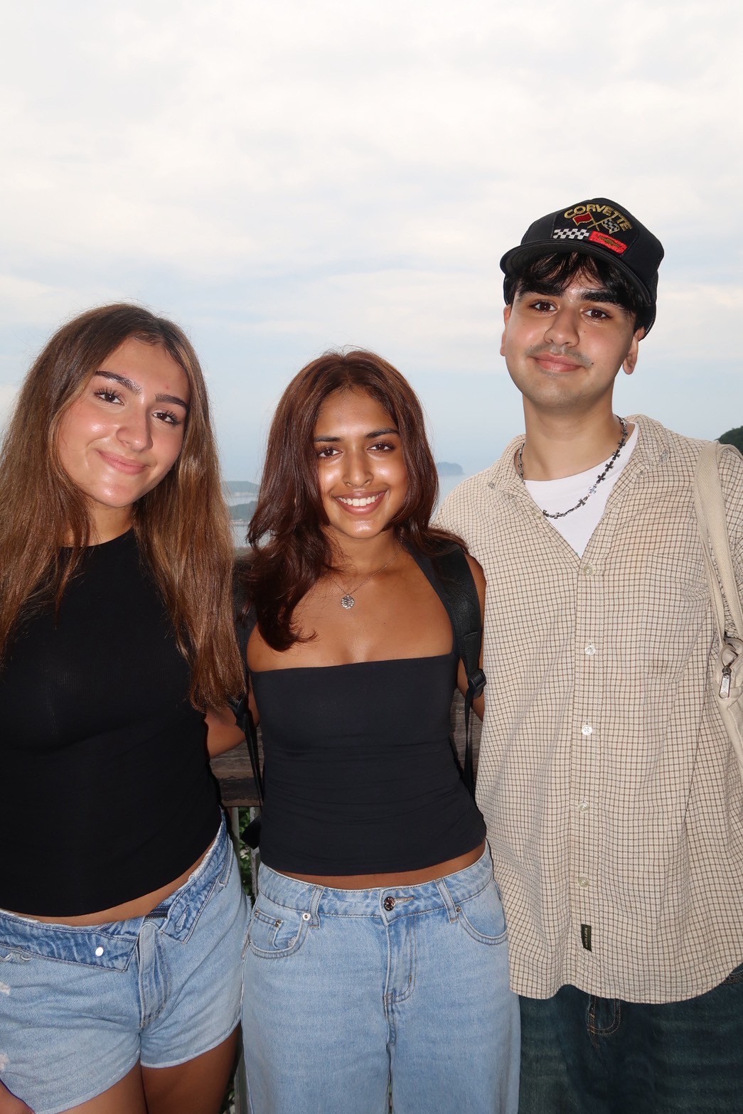 Zara, Maya, and Rohan at one of the viewpoints in Jiufen.