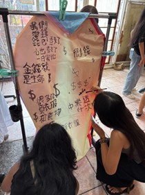 After a delicious lunch and some complementary popsicle sticks, we were ready to continue exploring this beautiful site. As it often happens in Taiwan (and we say this with love) we then promptly got DUMPED on by a sudden thunderstorm. We can say from experience that traversing stairs that more closely resemble waterfalls is not for the faint of heart! Soggy socks and a scenic walk later, we made it back on to the bus. We headed to the final location of our trip, which was Shifen. There, we walked through the memorable main street. We even got to both make and release traditional Chinese lanterns for good luck, as well as future blessings.