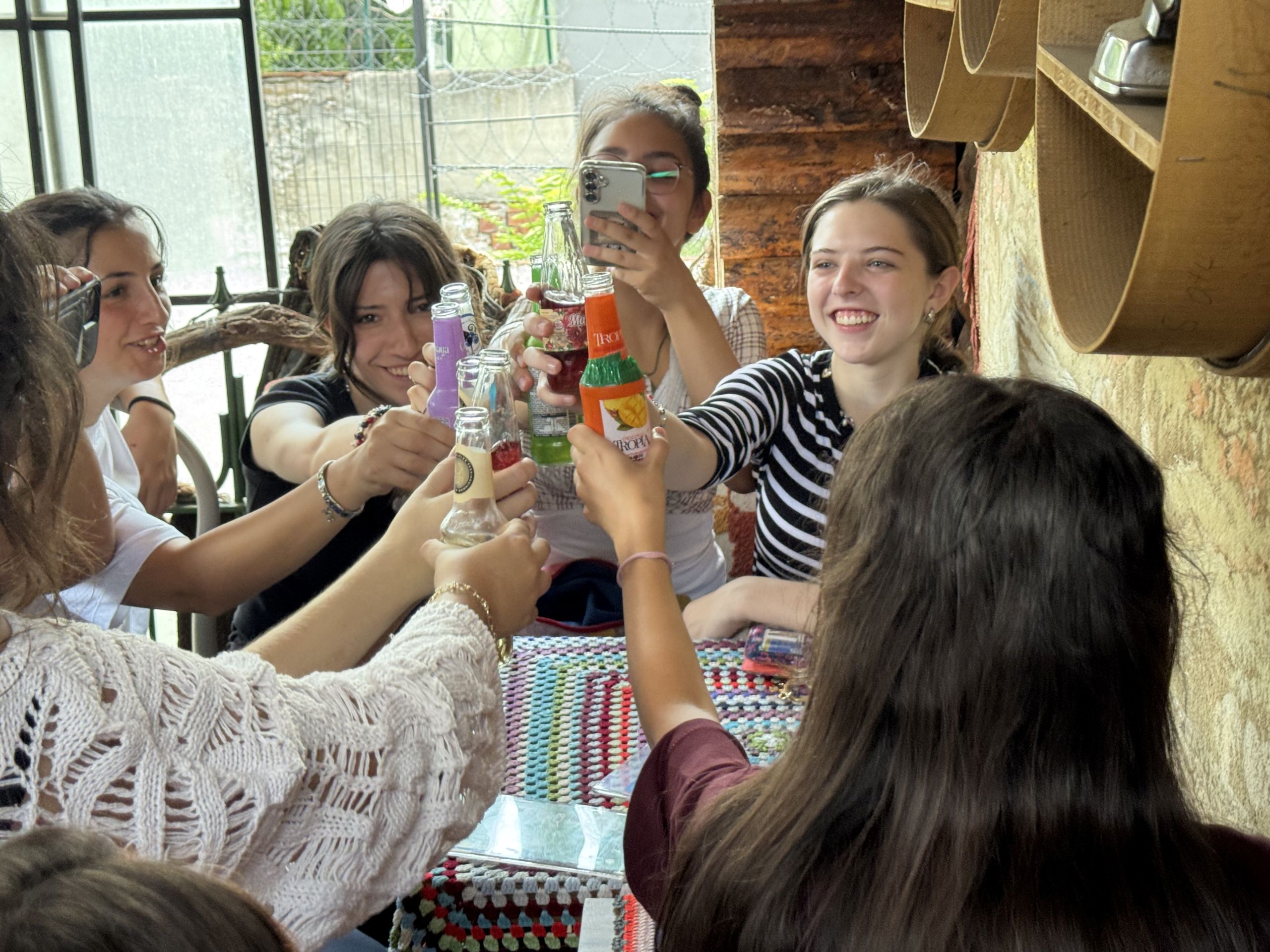 Students and host siblings toast to the end of another week in Bursa