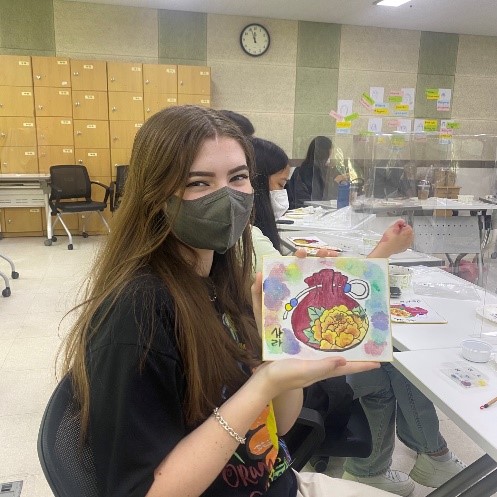 Students got a chance to immediately apply their Korean learning to their daily lives. Learning about food and grocery store vocabulary last week helped Gabby work through her Korean boxed lunch!