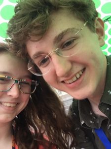 Relaxing over lunch at the school cafeteria. Clockwise from left: Jacob, Anjali, Shea, Peter, Ottilie, Cheyenne, McLaren, and Grace.