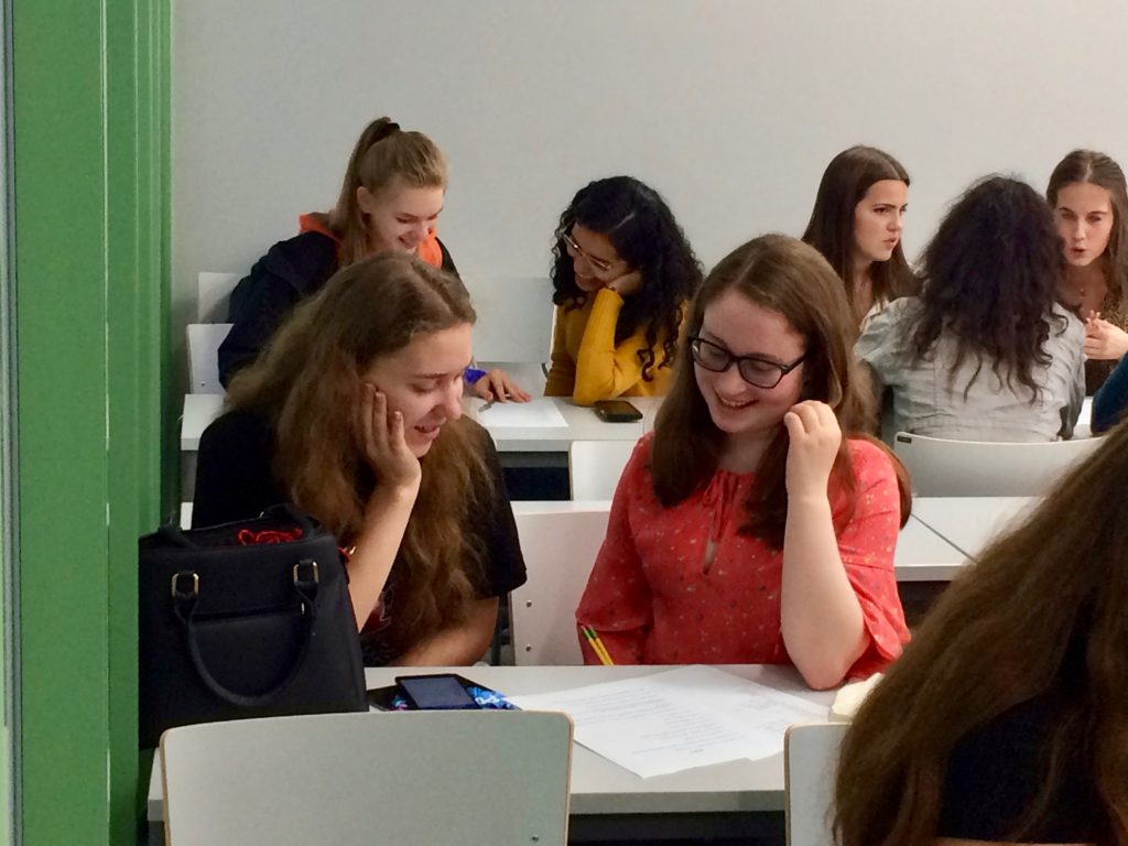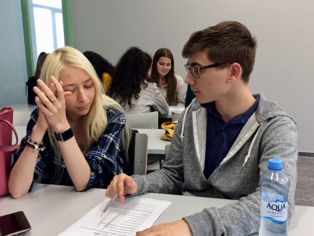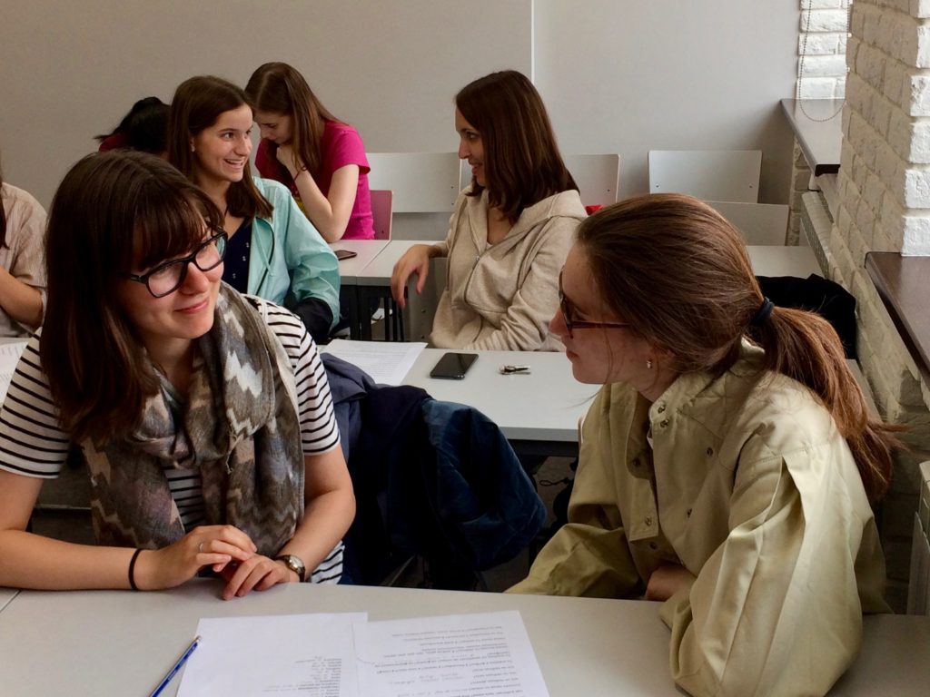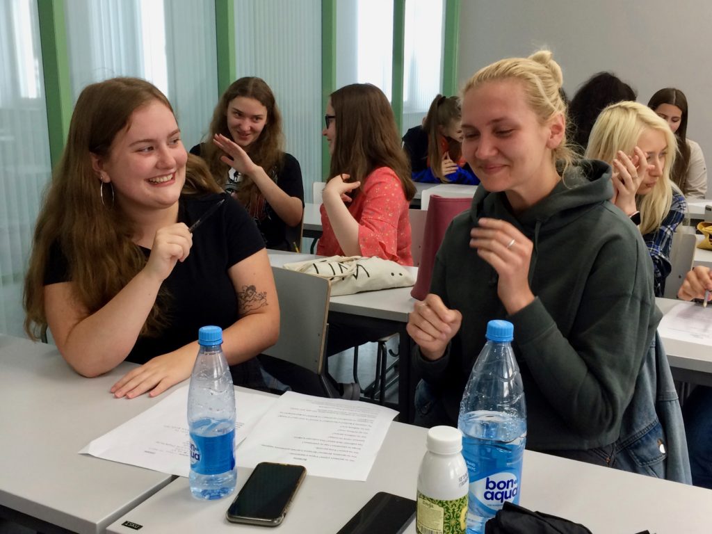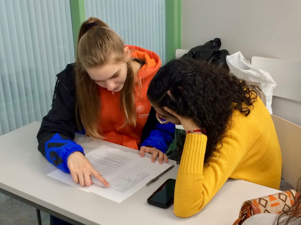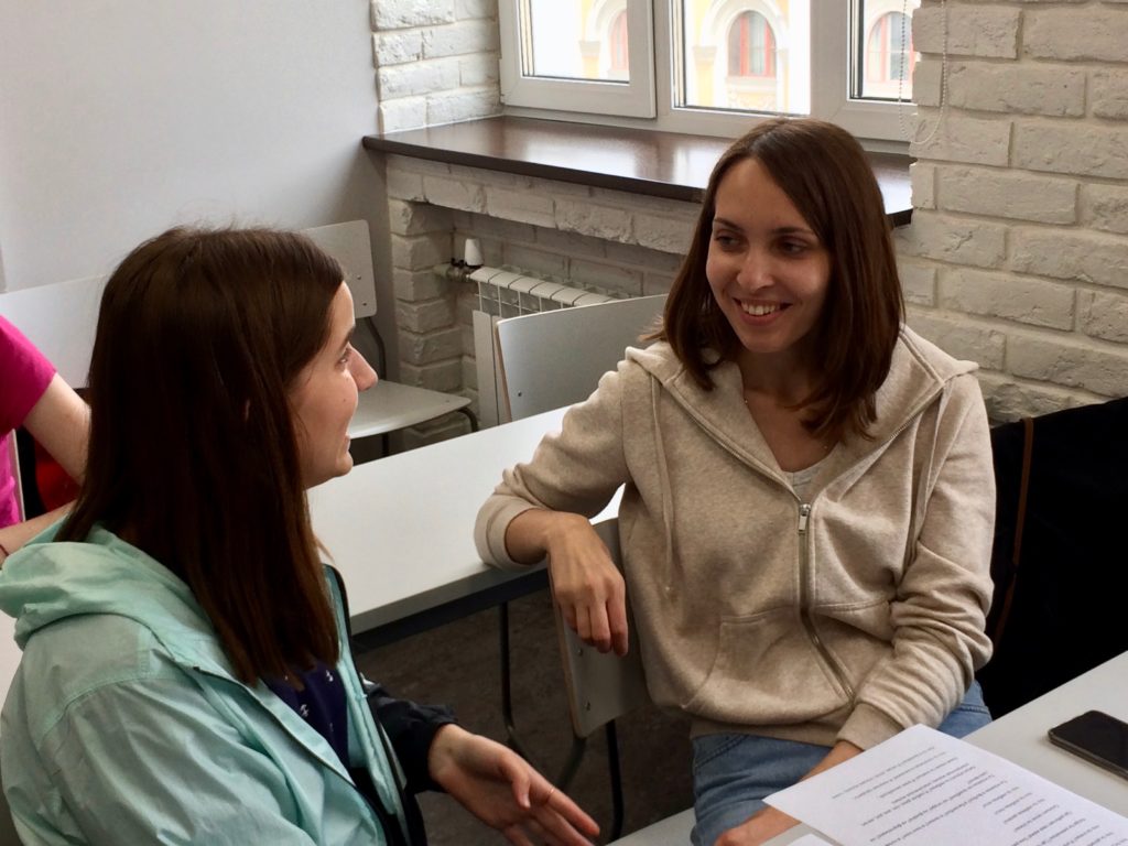 I’ll finish this week’s post with photos of the students working with their peer language partners yesterday. They practiced asking and answering questions, discussed what they do in their free time, sang a Russian song, played a lively game of charades, and worked in teams to practice new vocabulary.