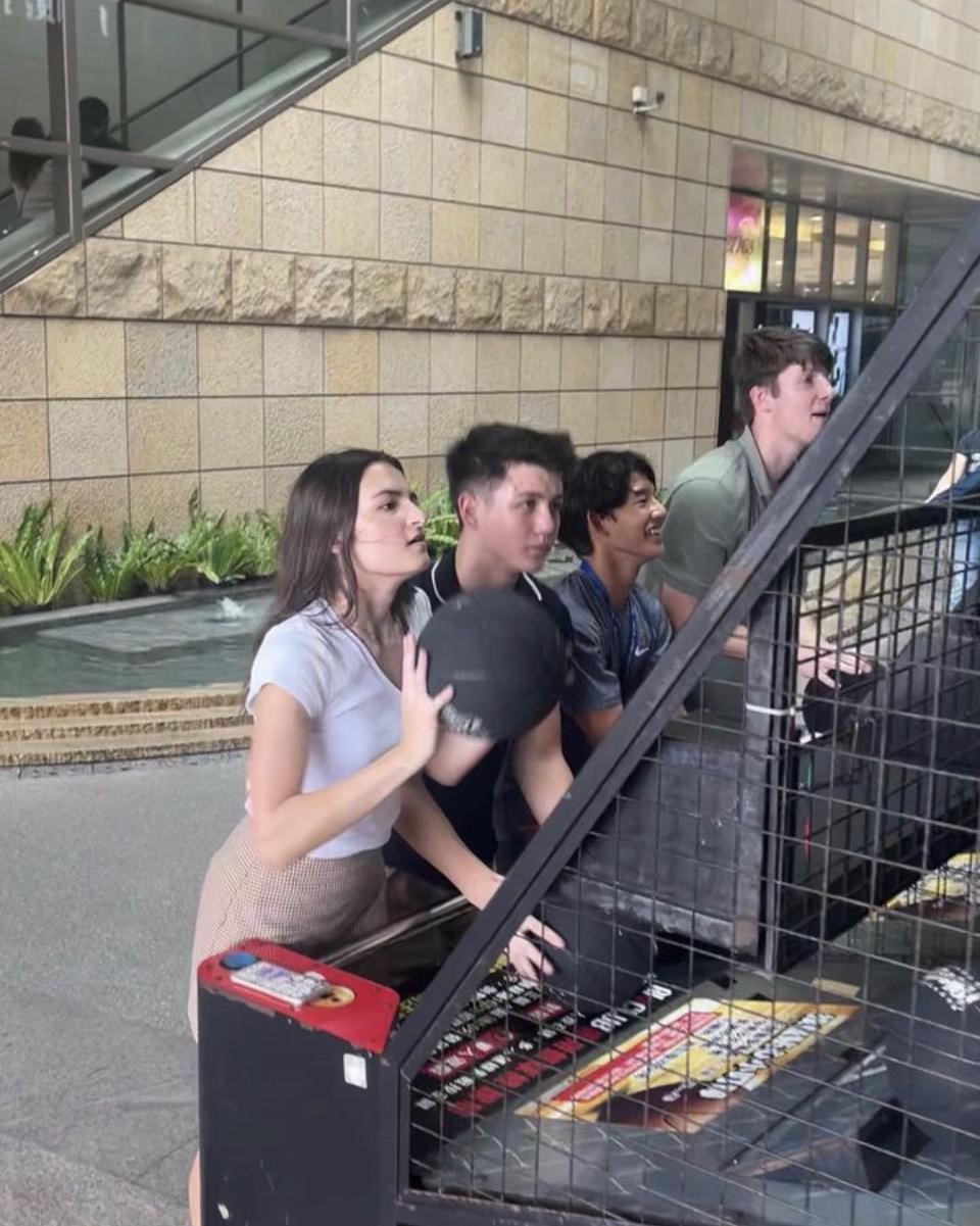 Friday afternoon, a few NSLI-Y students, Harry, Matthew, Ronan, Kaylee, Liz, and Avery, took a quick trip to 美麗華 (Miramar) to interview locals for their projects. They took a short break for an intense game of 籃球 (basketball) in which basketball fanatics, Harry and Matthew, emerged victorious with a score of over 300. The students also ran into Nan Laoshi (our resident director) in the middle of the game, which was a pleasant surprise.