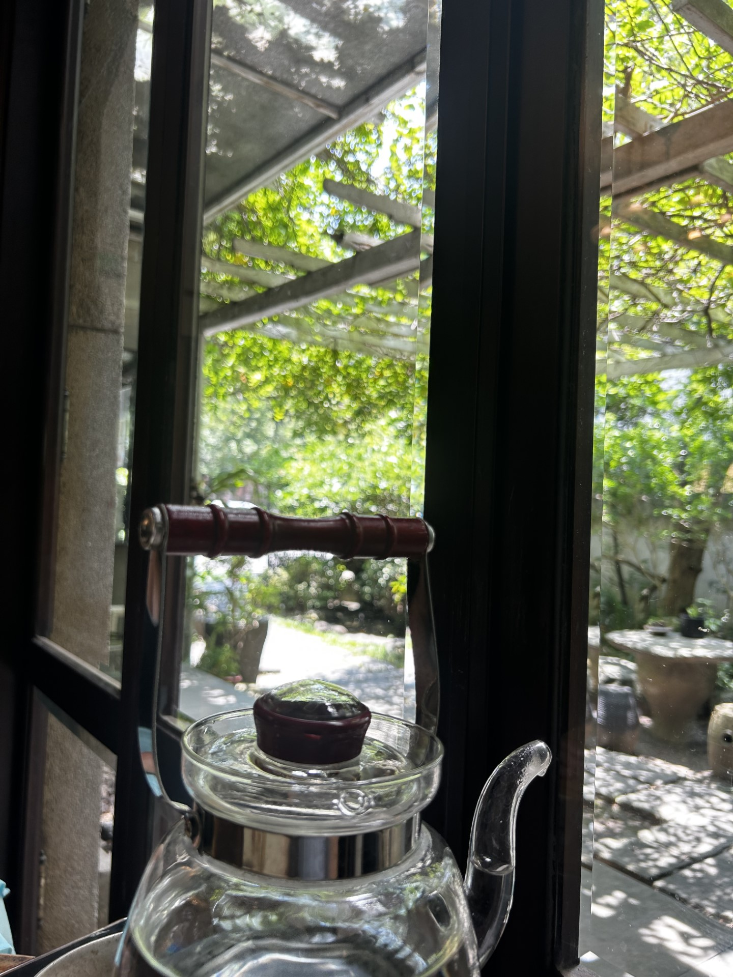 View of home-grown Wisteria tea.