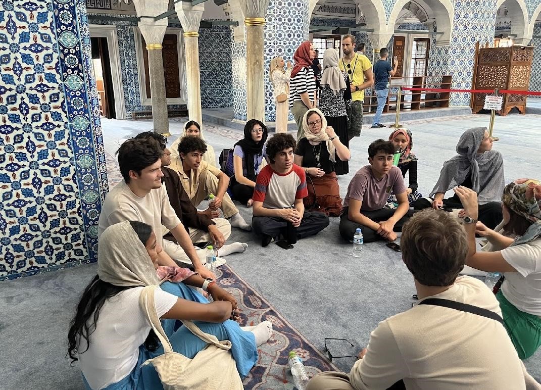 The cohort learning about the history of the Blue Mosque and its tilework from a local guide.