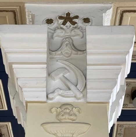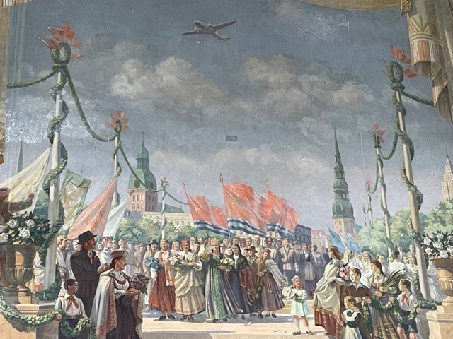 Saturday’s full-day tour of local Soviet sites began with a visit to the Academy of Sciences in Riga. This building, an example of Stalinist architecture, was constructed between 1951 and 1961 and is decorated with hammer and sickle symbols and Latvian folk ornaments and motifs. The 17th-floor balcony features an observation deck from which to admire the Riga cityscape.