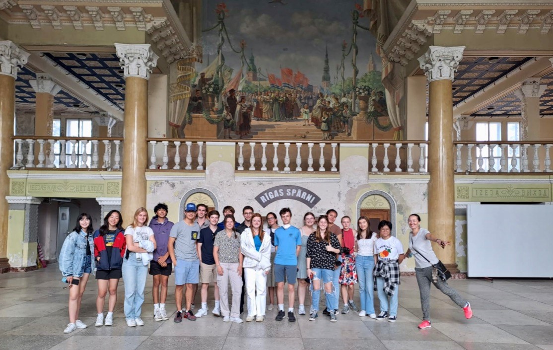 Greetings from sunny Riga! During Week 4 of the NSLI-Y Russian program in Latvia, students took advantage of a variety of opportunities to learn more about their host country and about Latvian and Russian culture. They enjoyed a tour of the Bank of Latvia, a discussion with students from the Riga Young Leaders School, a lecture about Soviet power in Latvia, language activities and games with peer language partners, and a full-day tour of Soviet Riga, including a visit to a formerly secret Soviet bunker.