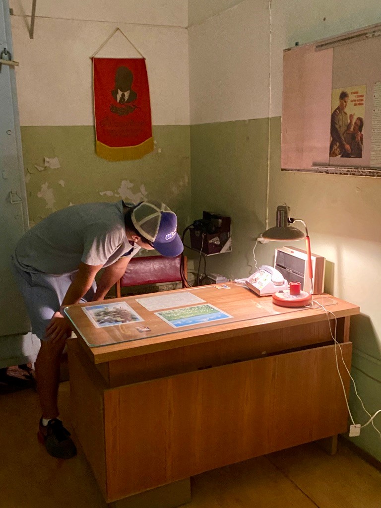 Alex studies documents on this Soviet-era desk.